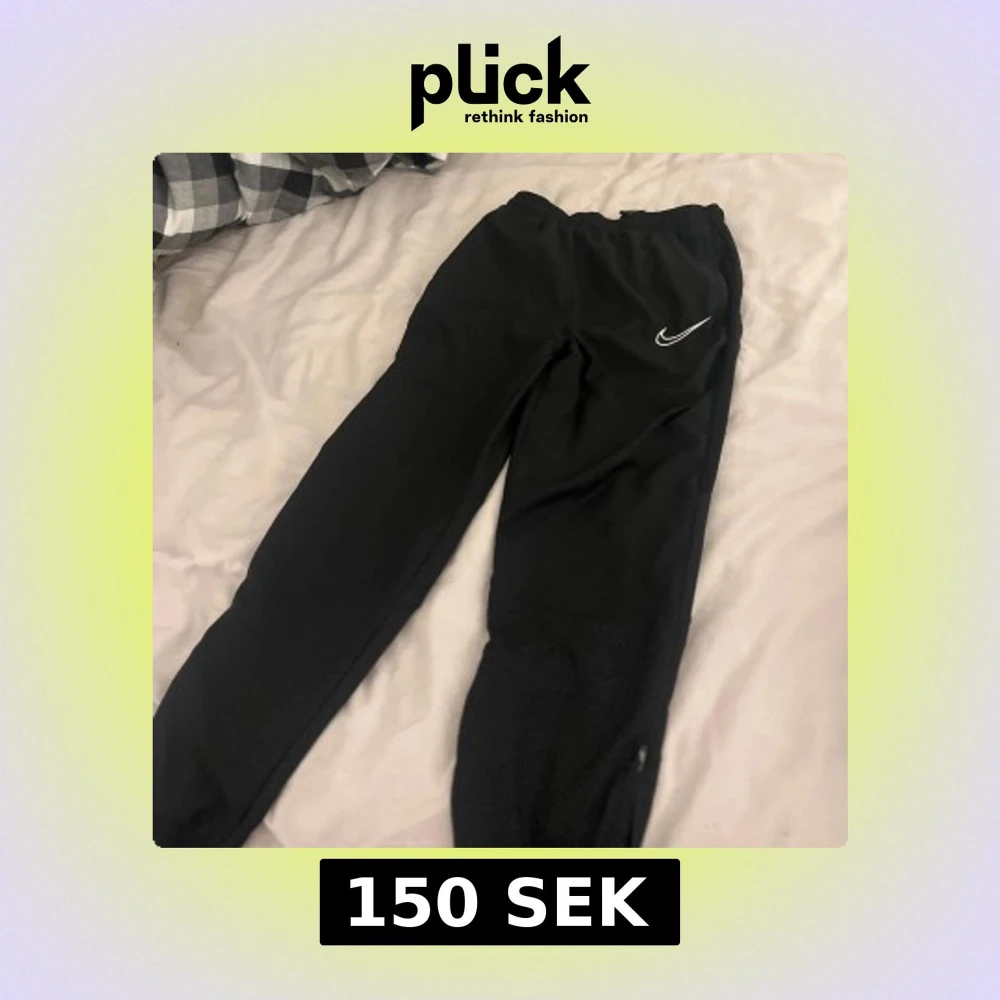 Svarta träningsbyxor från Nike med Dri-FIT-teknologi. Byxorna har en smal passform, resår i midjan och dragkedjor vid bensluten. Swoosh-logga på låret och praktiskt material som andas. Perfekta för dig som gillar sportig stil.