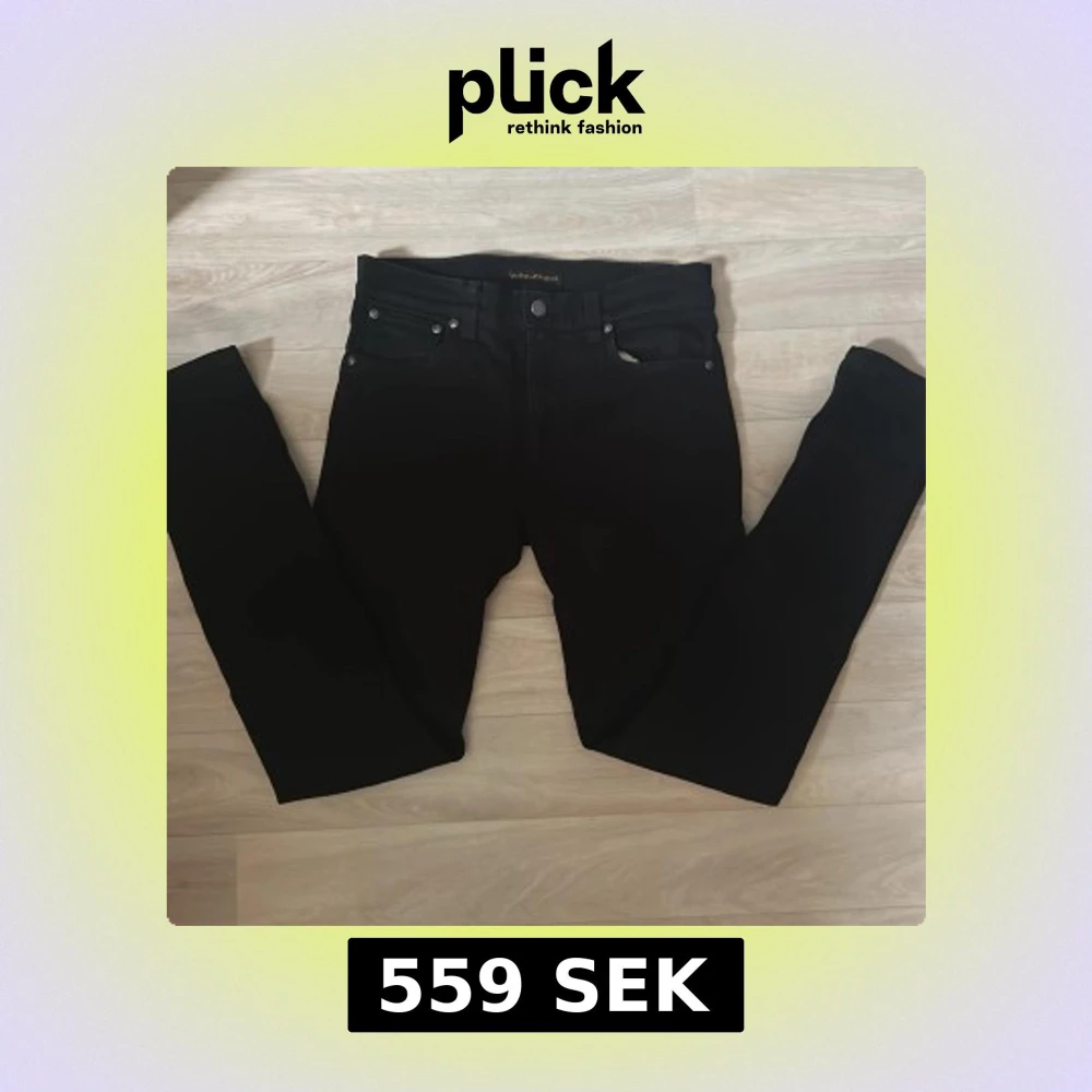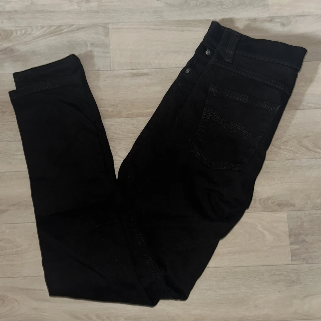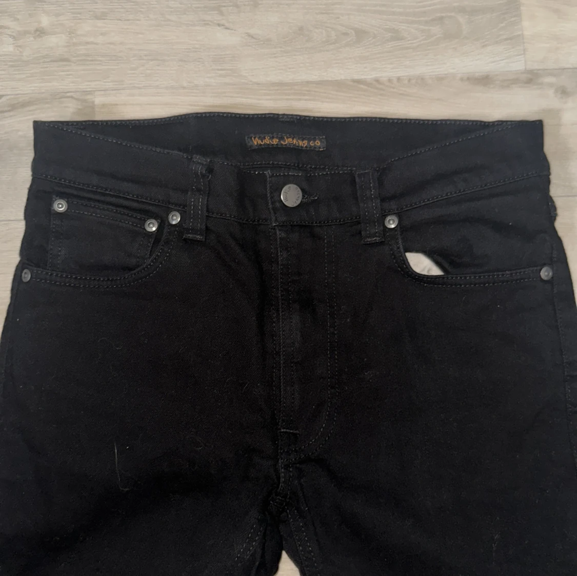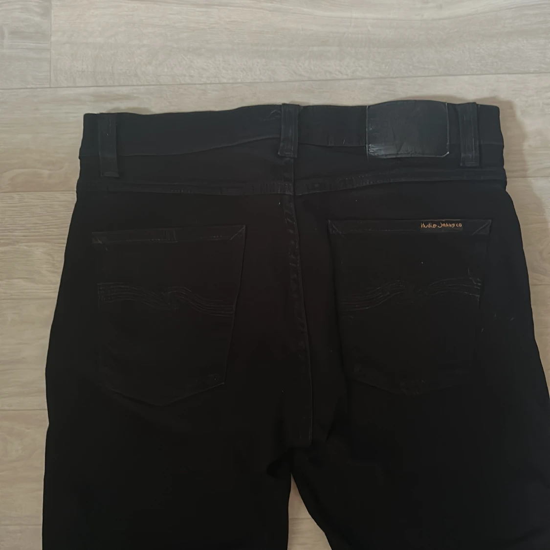 Svarta jeans från Nudie Jeans med klassisk femficksdesign och raka ben. Jeansen har svarta sömmar, silverfärgade nitar och knapp, samt Nudie Jeans-logga på bakfickan. Tillverkade i jeansmaterial med en stilren och enkel look.