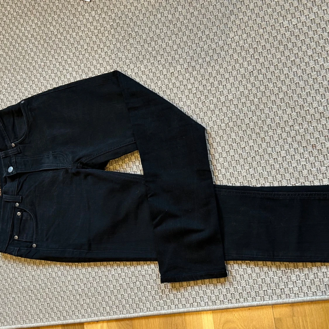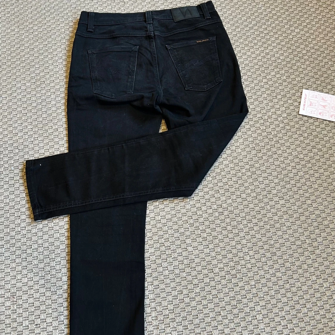 Svarta nudie jeans i bra skick. Storleken på jeansen är 30/32 men de är avkapade till ca 30/30. Hör av er om ni har frågor! Pris går att diskutera.