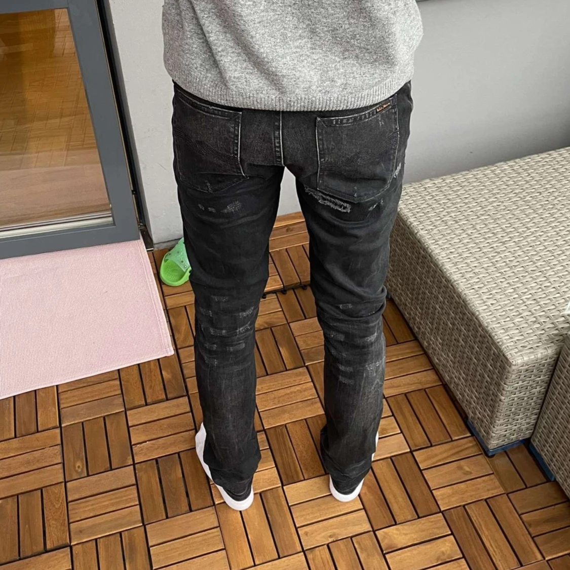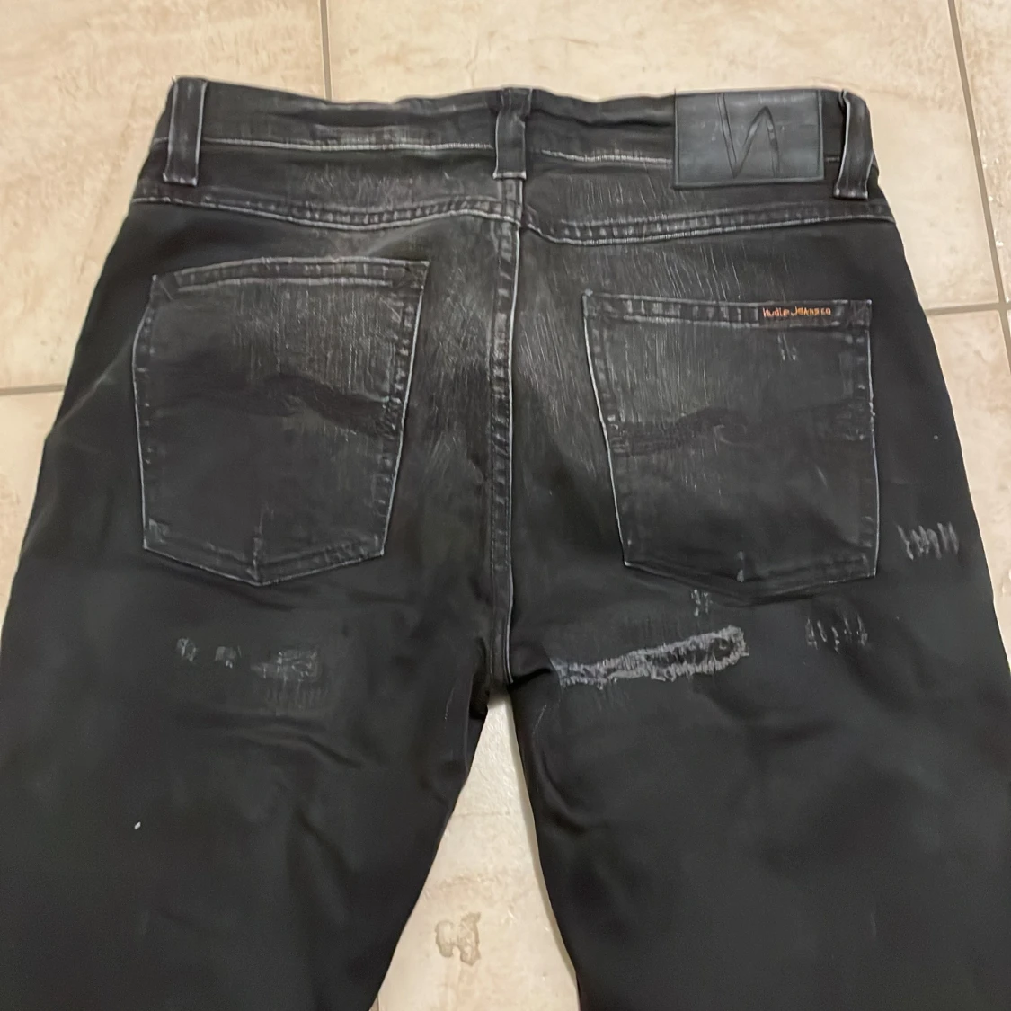 Svarta nudie jeans med slitningar