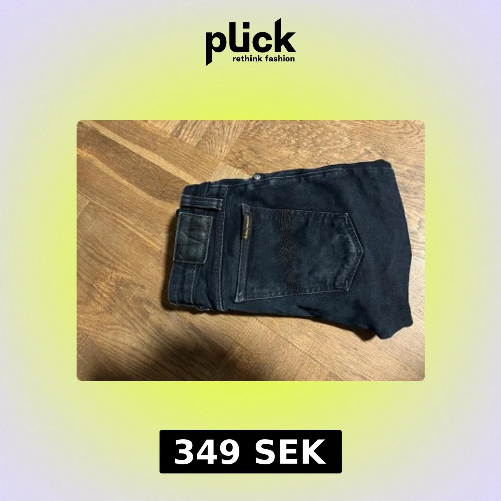 Säljer ett par svarta skinny jeans från Nudie Jeans i storlek 29/32. De har klassisk femficksdesign, svarta sömmar och Nudie-logga på bakfickan. Jeansen är tillverkade i stretchig denim för en tight passform och har knappgylf.