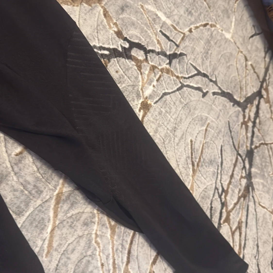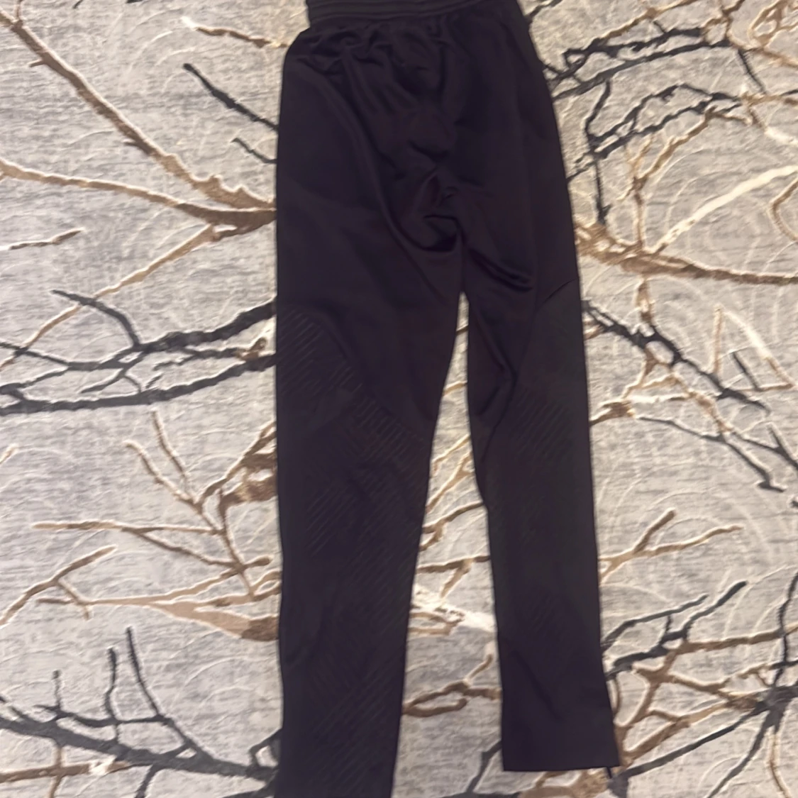 Snygga svarta träningsbyxor från Jordan x PSG med logga på höften och Jumpman-tryck på benet. Byxorna har elastisk midja, smal passform och coolt mönstrade paneler längs benen. Materialet är mjukt och lätt polyester, perfekt för sport eller chill.