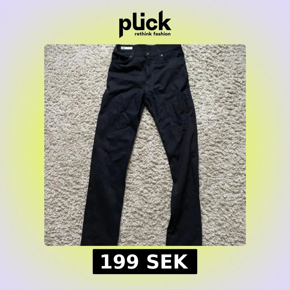 Svarta byxor från Zara i klassisk rak modell med fem fickor och knappstängning. Materialet är slitstarkt och har en lätt stretch för skön passform. Storlek 38.
