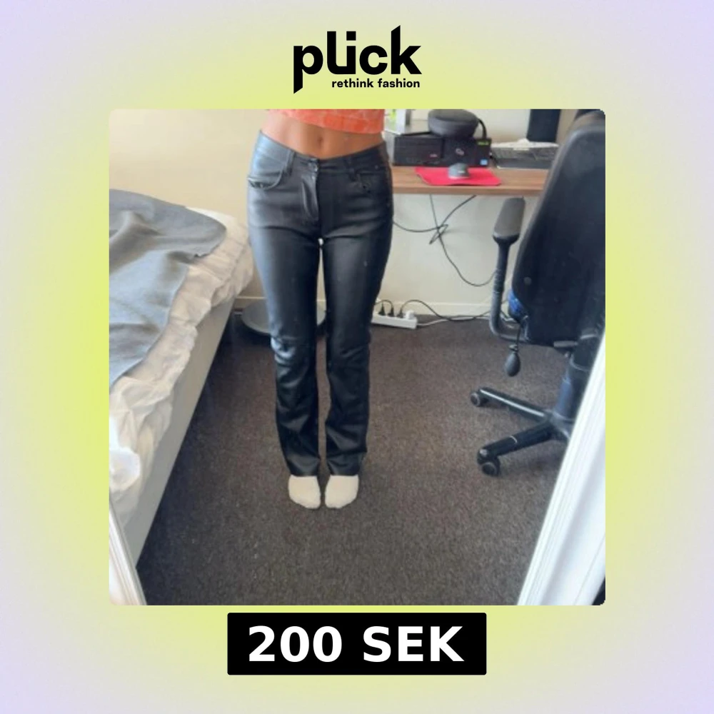 Säljer mina skinnbyxor då dom inte kommer till användning. Lite tecken på användning men bra omhändertagna. Från bikbok storlek 34🌸