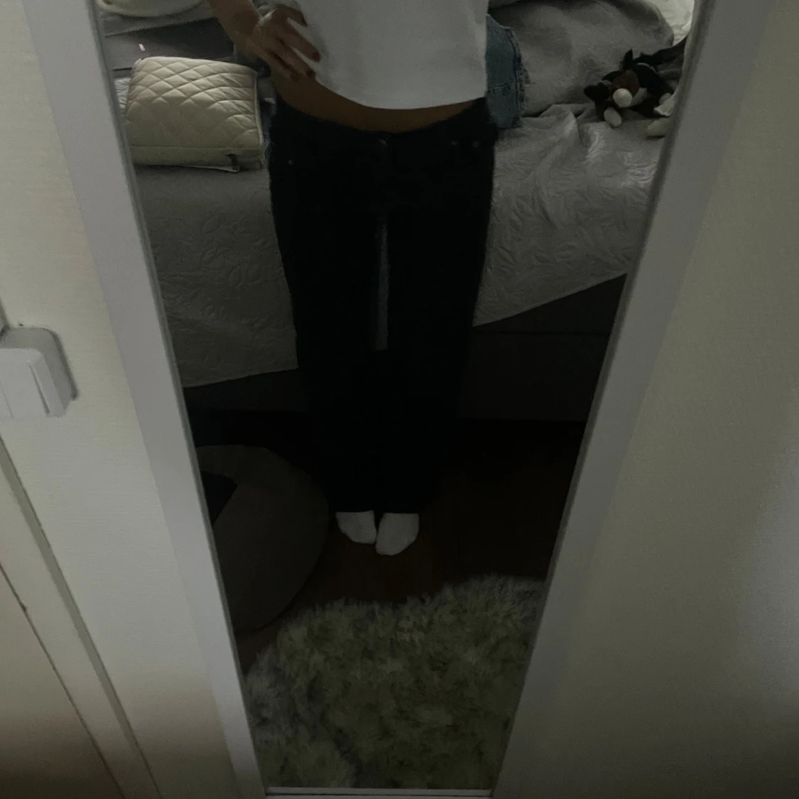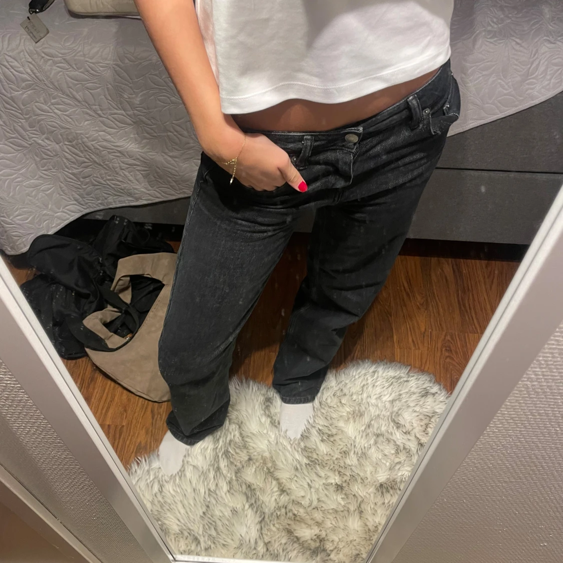 Snygga svarta jeans med rak passform och låg midja. Perfekta för dig som gillar en avslappnad och trendig stil. Om du är interesserad av fler bilder så är det bara att skicka till mig💓