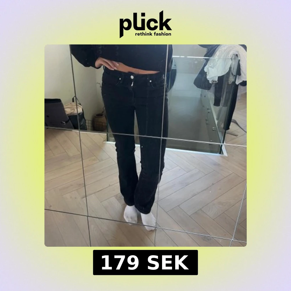 Säljer ett par svarta jeans med rak/bootcut passform. Jeansen har low/mid waist och stängs med dragkedja och knapp. Snygga och enkla att matcha till olika stilar. Köpta från Zara för något år sedan och använda runt 5 gånger, säljer då dem börjar bli för små, storleken är 36 och vid snabb affär kan priset diskuteras💞