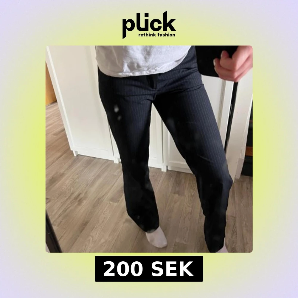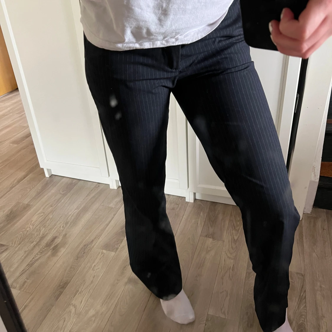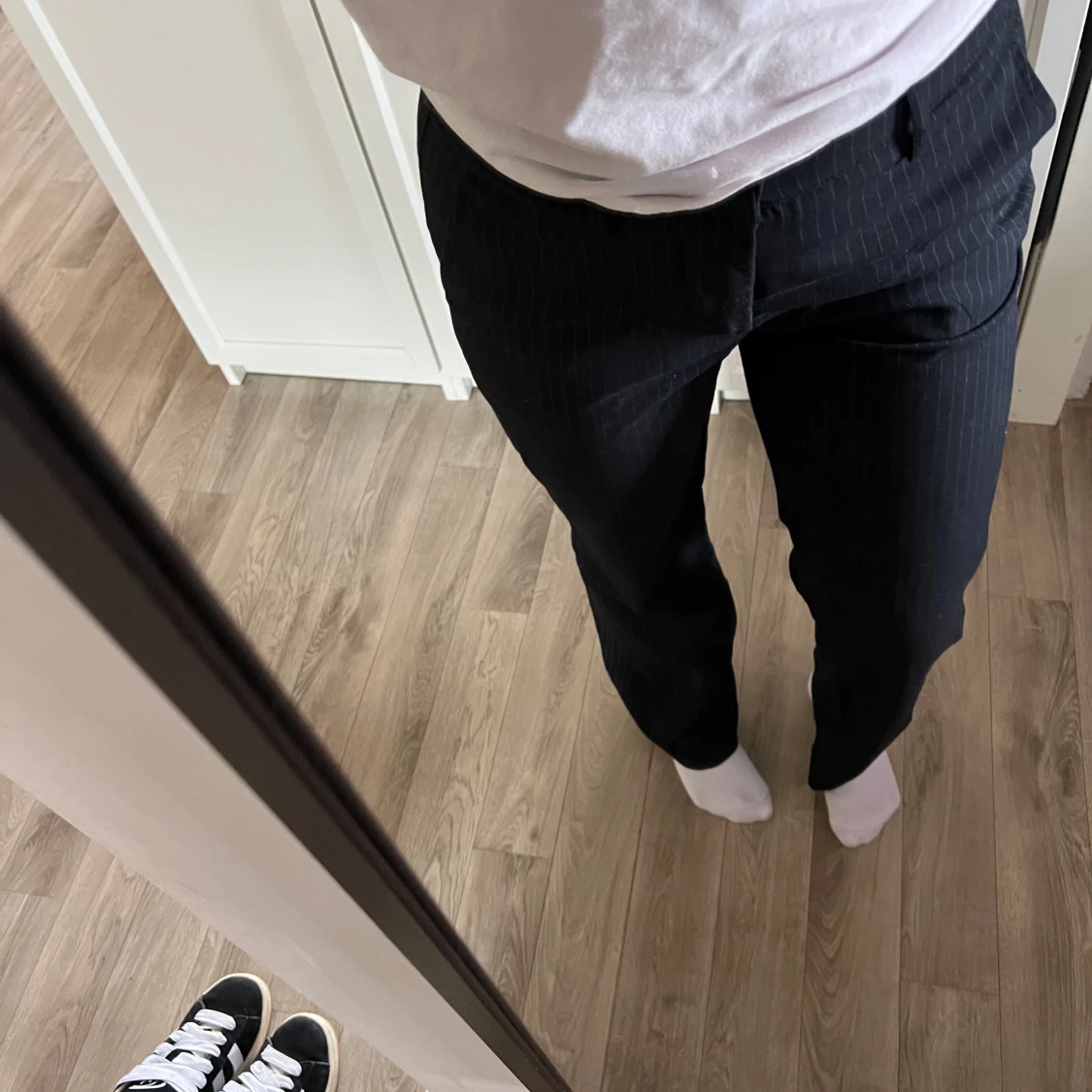 Snygga svarta kostymbyxor med diskreta ränder. Byxorna har en klassisk passform och är perfekta för en stilren look från Madlady🩷 34/regular