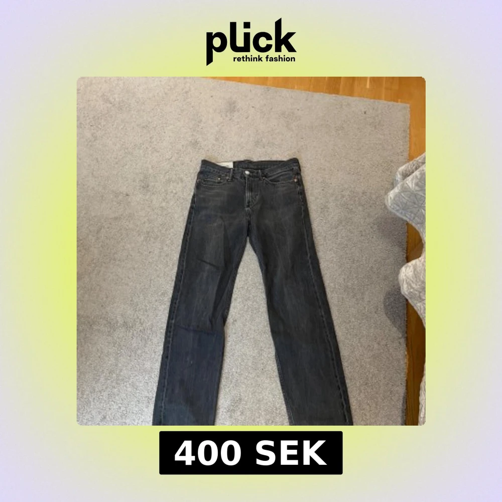 Säljer ett par svarta jeans från H&M i relaxed fit med raka ben och klassisk femficksdesign. Jeansen har en mörk tvätt och är tillverkade i bomullsmaterial. Perfekta för en chill och avslappnad stil.