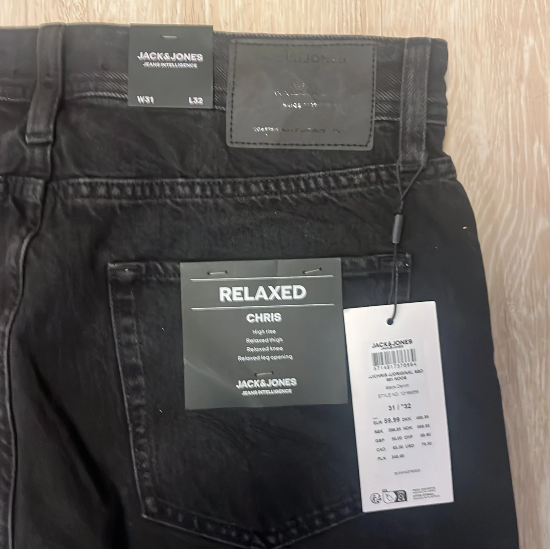 Säljer helt nya Svarta jeans från Jack & Jones i modellen Chris med relaxed fit, hög midja och raka ben. Tillverkade i svart denim med klassiska fem fickor och bälteshällor. Perfekta för dig som gillar en avslappnad och stilren look.