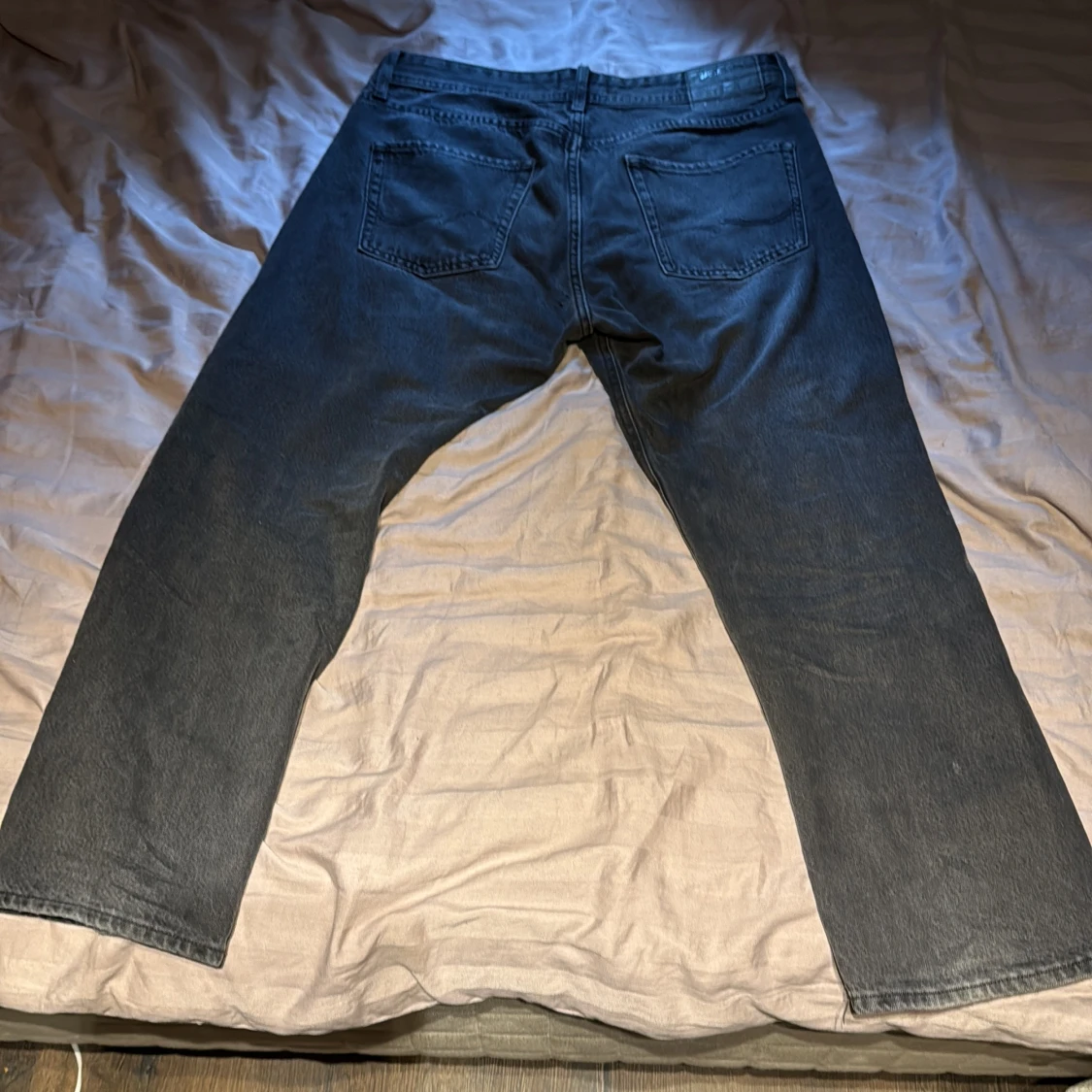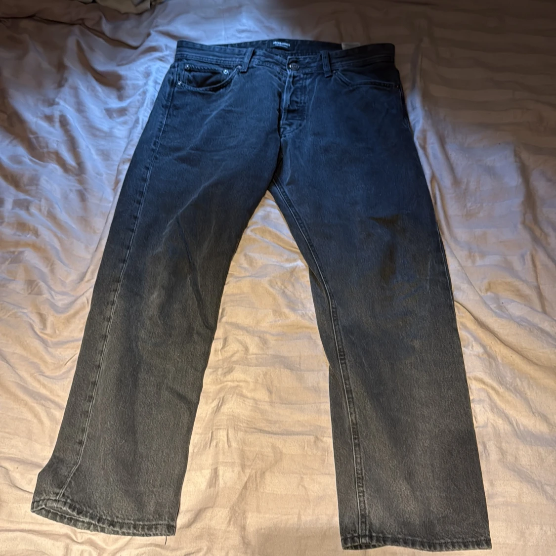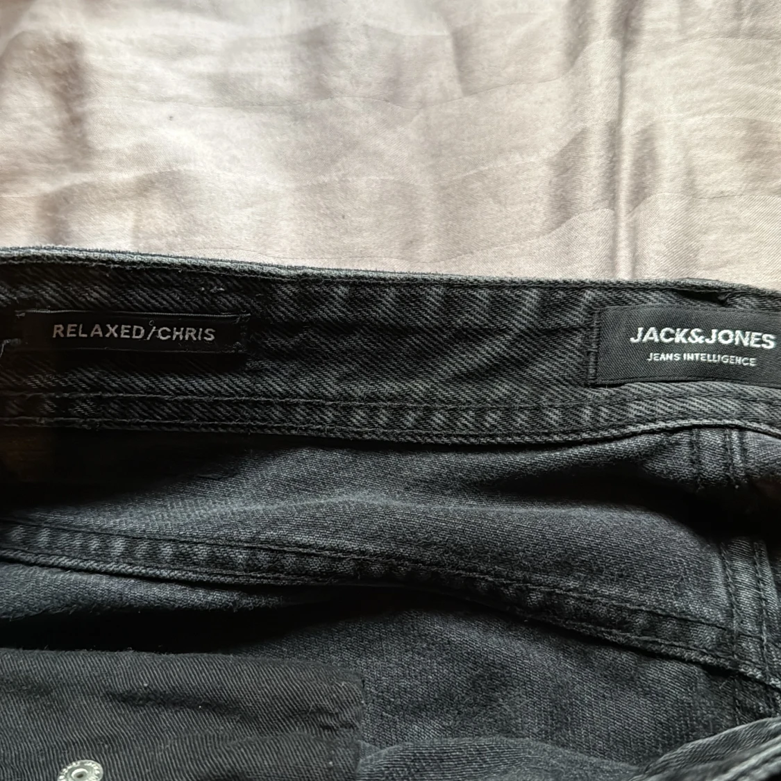 Svarta jeans från Jack & Jones i modellen Relaxed Chris. De har en avslappnad passform med raka ben och klassisk femficksdesign. Jeansen är tillverkade i denim och har en enkel, stilren look som passar till det mesta. Finns en liten märke ibak men absolut inget som märks.