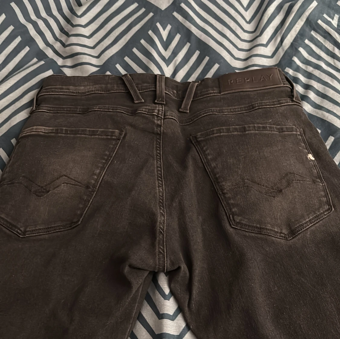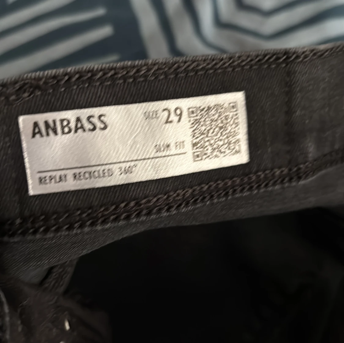 Snygga svarta Replay Anbass jeans med klassisk femficksdesign och diskreta slitningar. Modellen har smal passform och raka ben, tillverkade i stretchigt jeansmaterial för extra komfort. Perfekta för dig som gillar stilrena och moderna jeans.