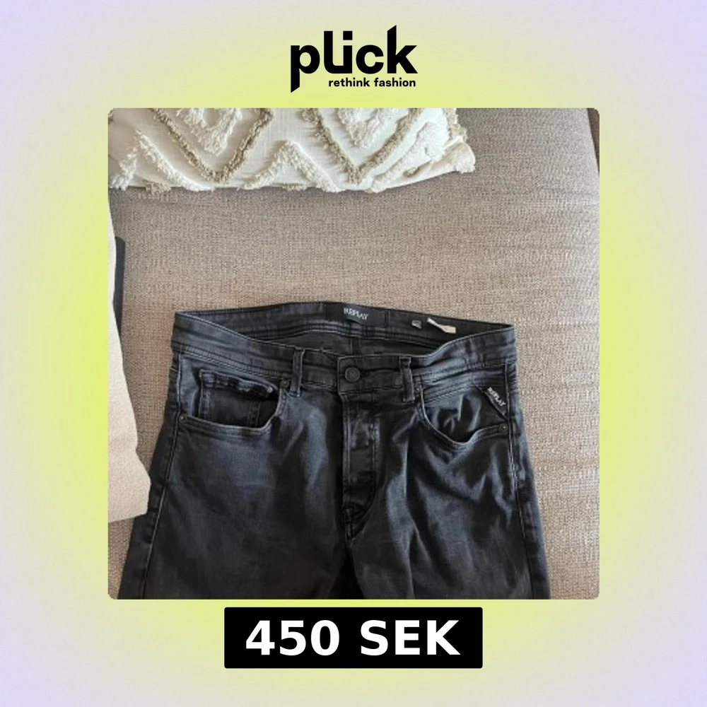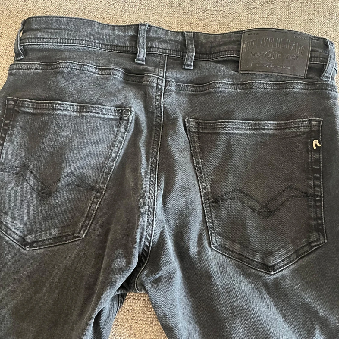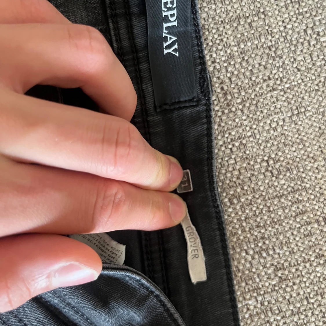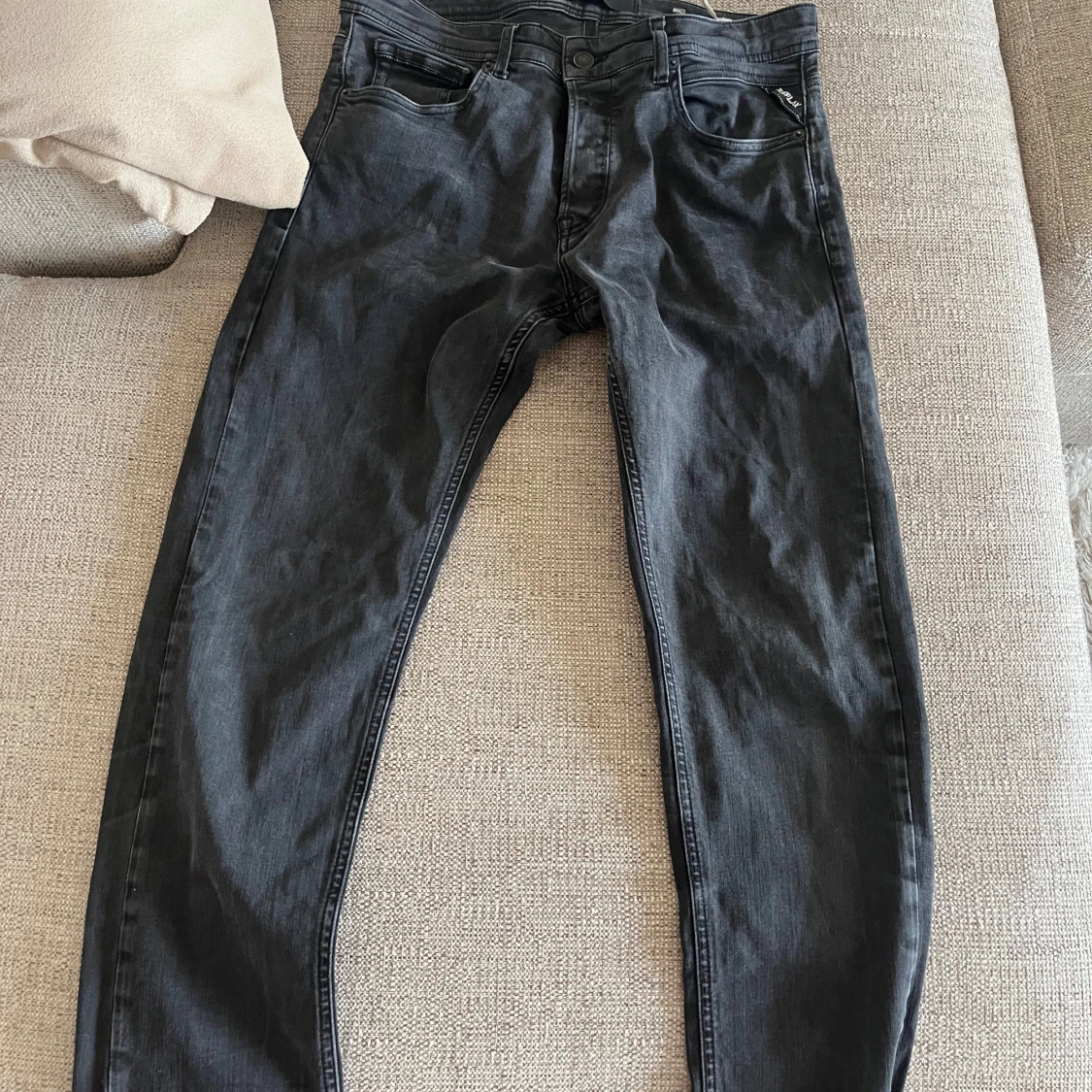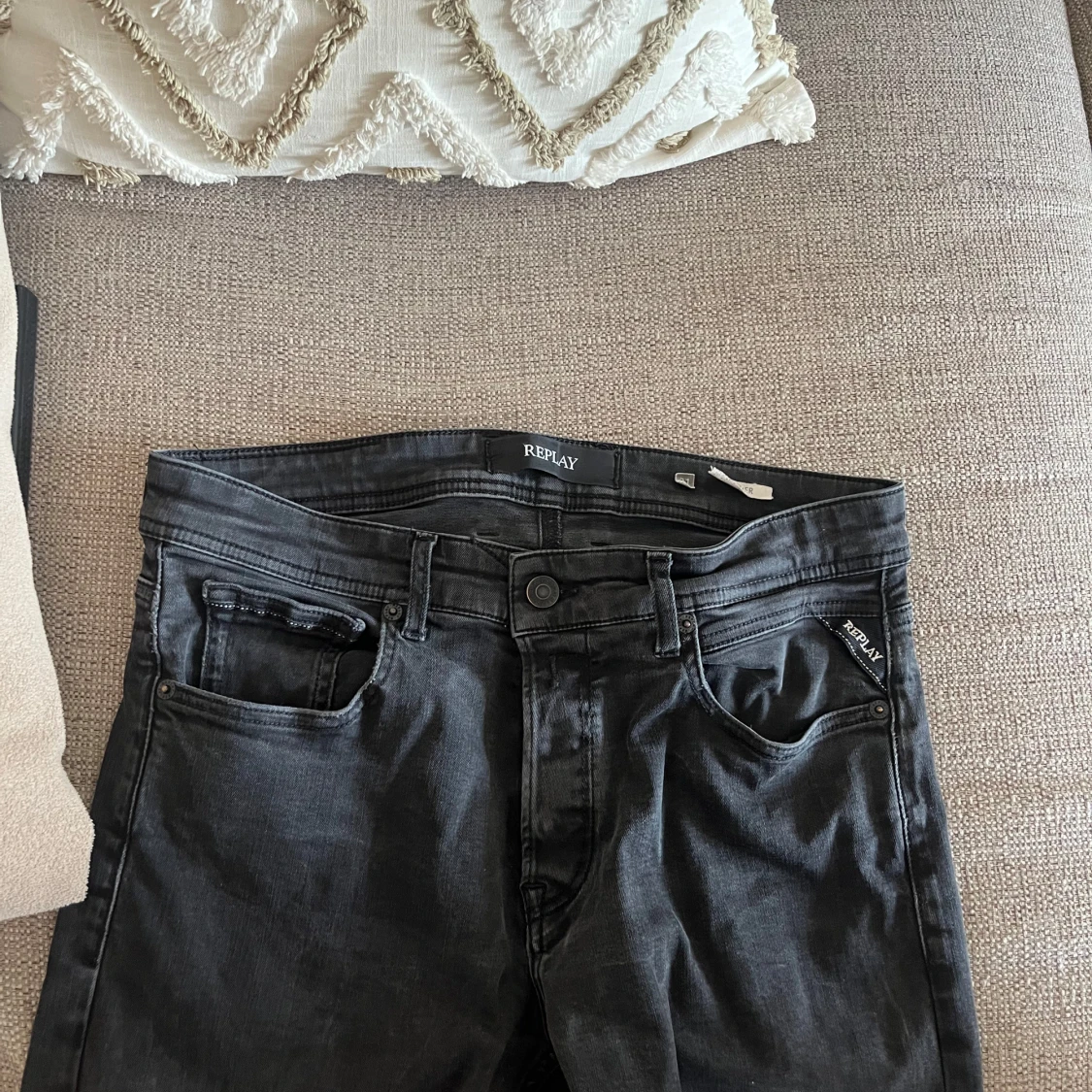 Säljer ett par svarta Replay Grover jeans i klassisk femficksmodell. Jeansen har raka ben, snygga detaljer på bakfickorna och diskret Replay-logga. Materialet är mjukt och stretchigt för extra komfort. Perfekta för dig som gillar stilrena och tidlösa jeans. STORLEK: 31,36