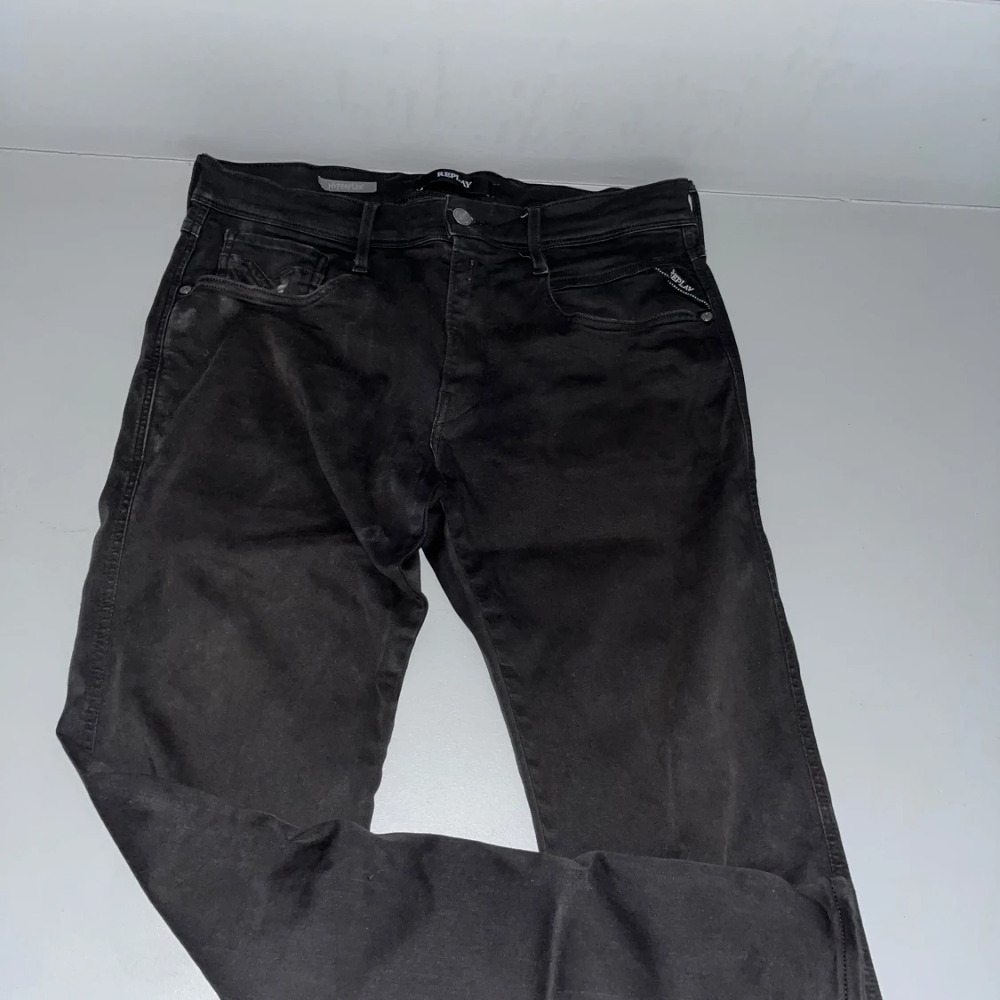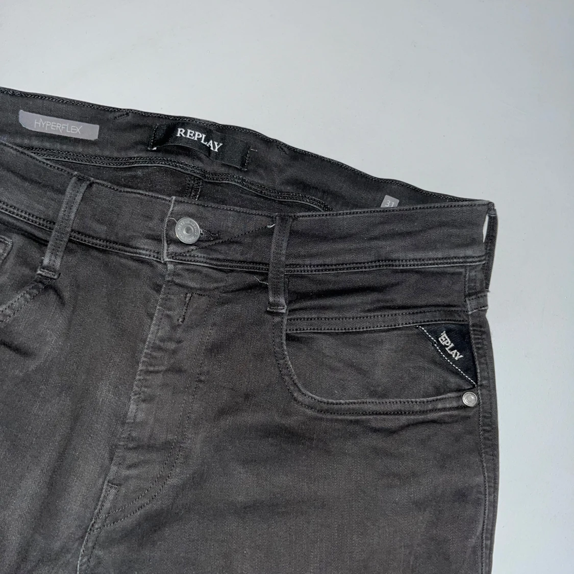 Säljer ett par svarta Replay Hyperflex jeans med klassisk femficksdesign och normal passform. Jeansen har dragkedja och knapp i gylfen samt diskret Replay-logga på fickan. Perfekta för dig som gillar stretchiga och bekväma jeans.