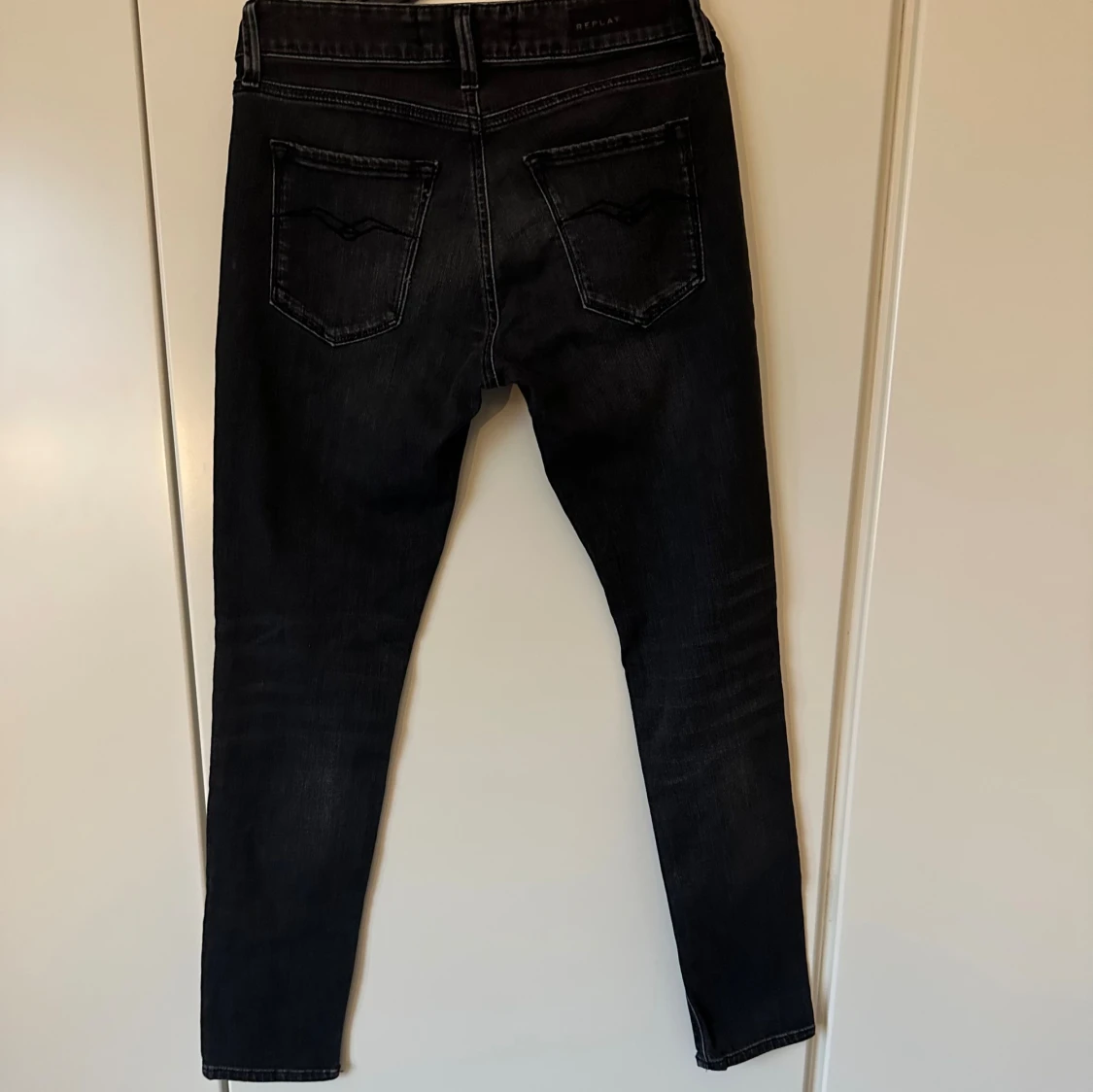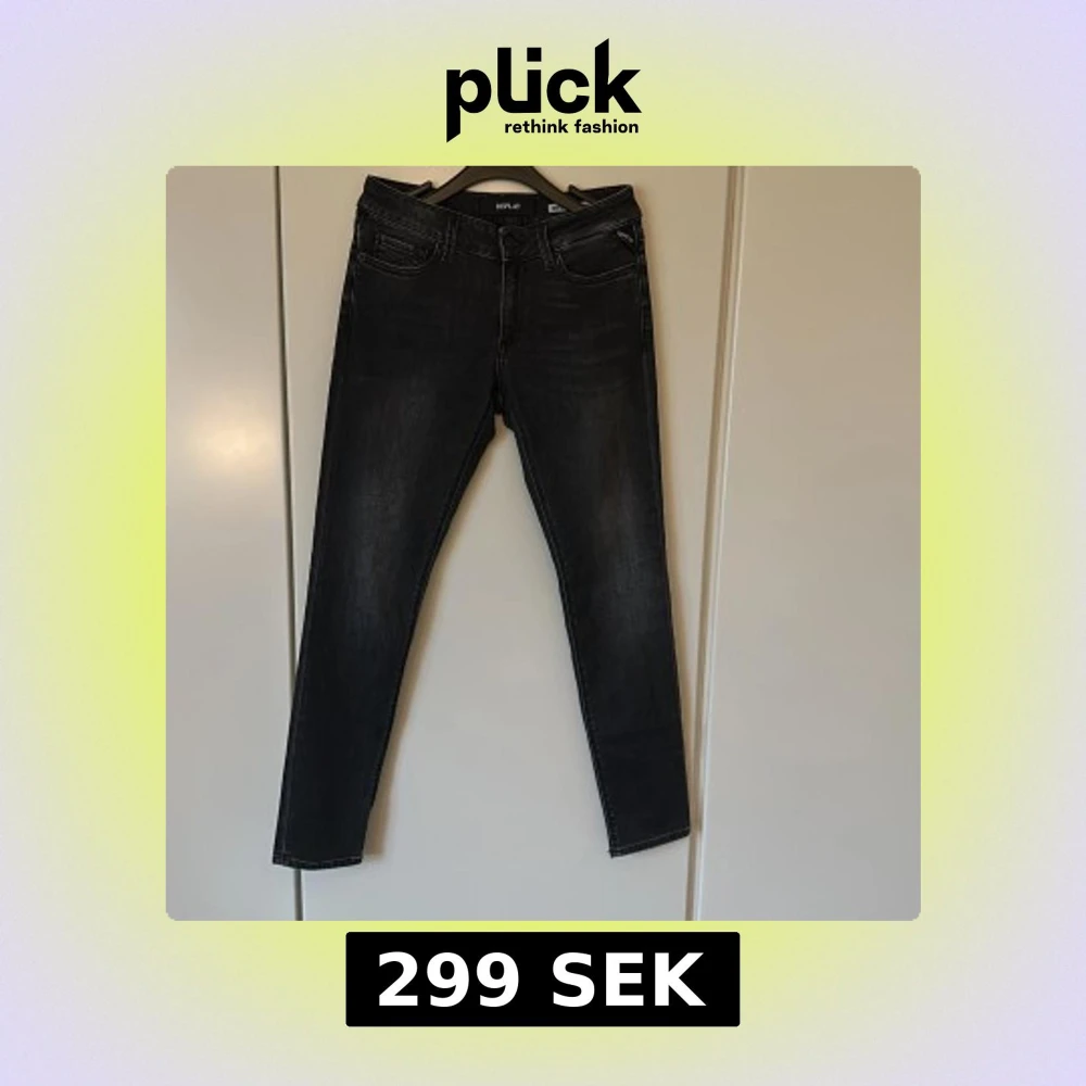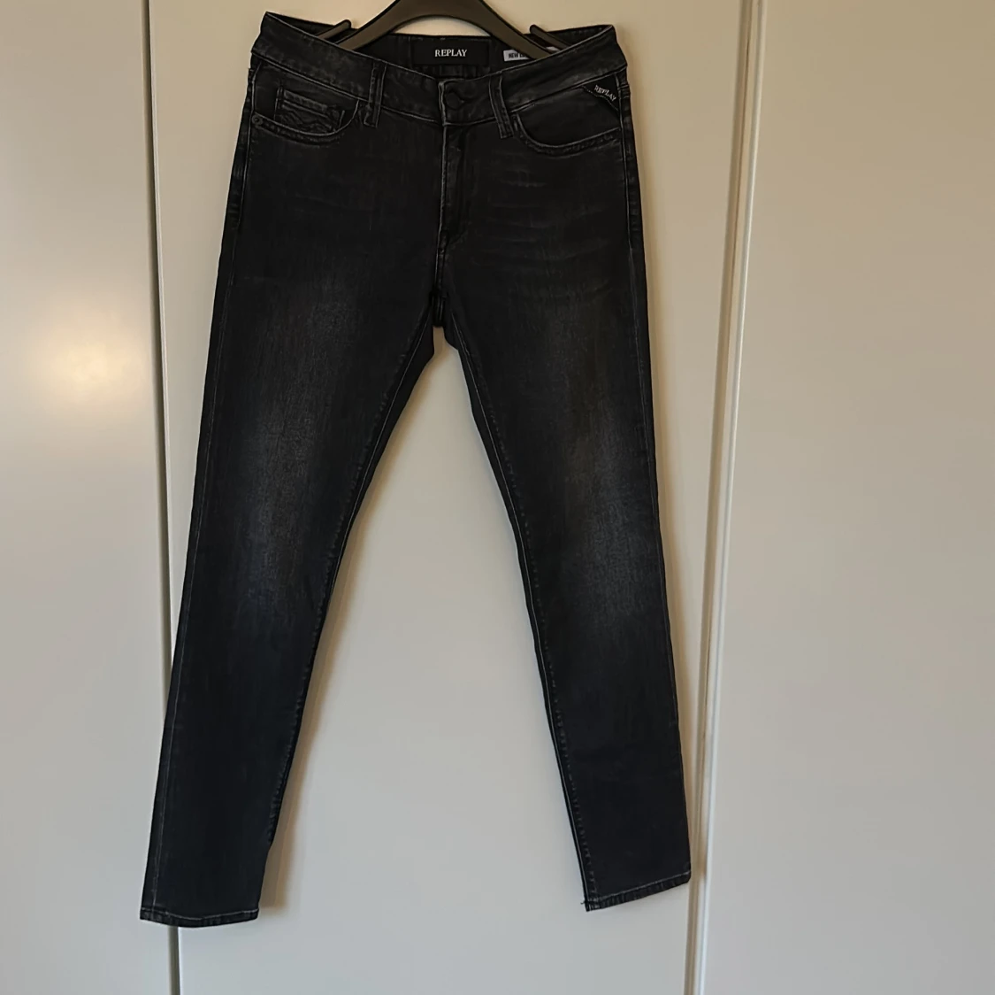 Snygga svarta jeans från Replay med smal passform och klassisk femficksdesign. Jeansen har en mörk tvätt med subtila slitningar och raka ben. Perfekt för dig som gillar stilrena och moderna jeans med en cool vibe.
