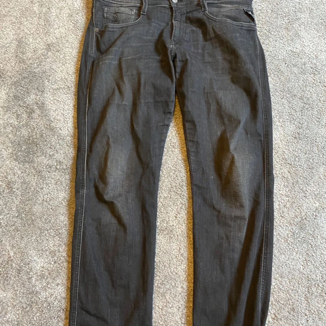 Säljer ett par snygga svarta replay jeans i storleken 33 34. Dem har hyperflex. Skriv för funderingar.