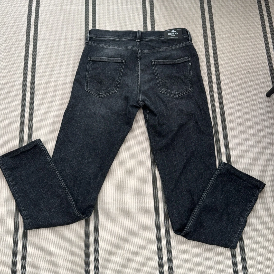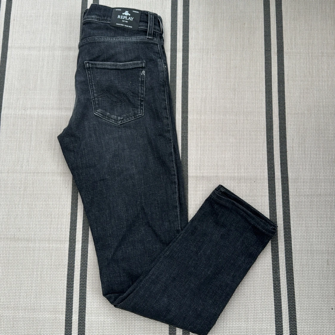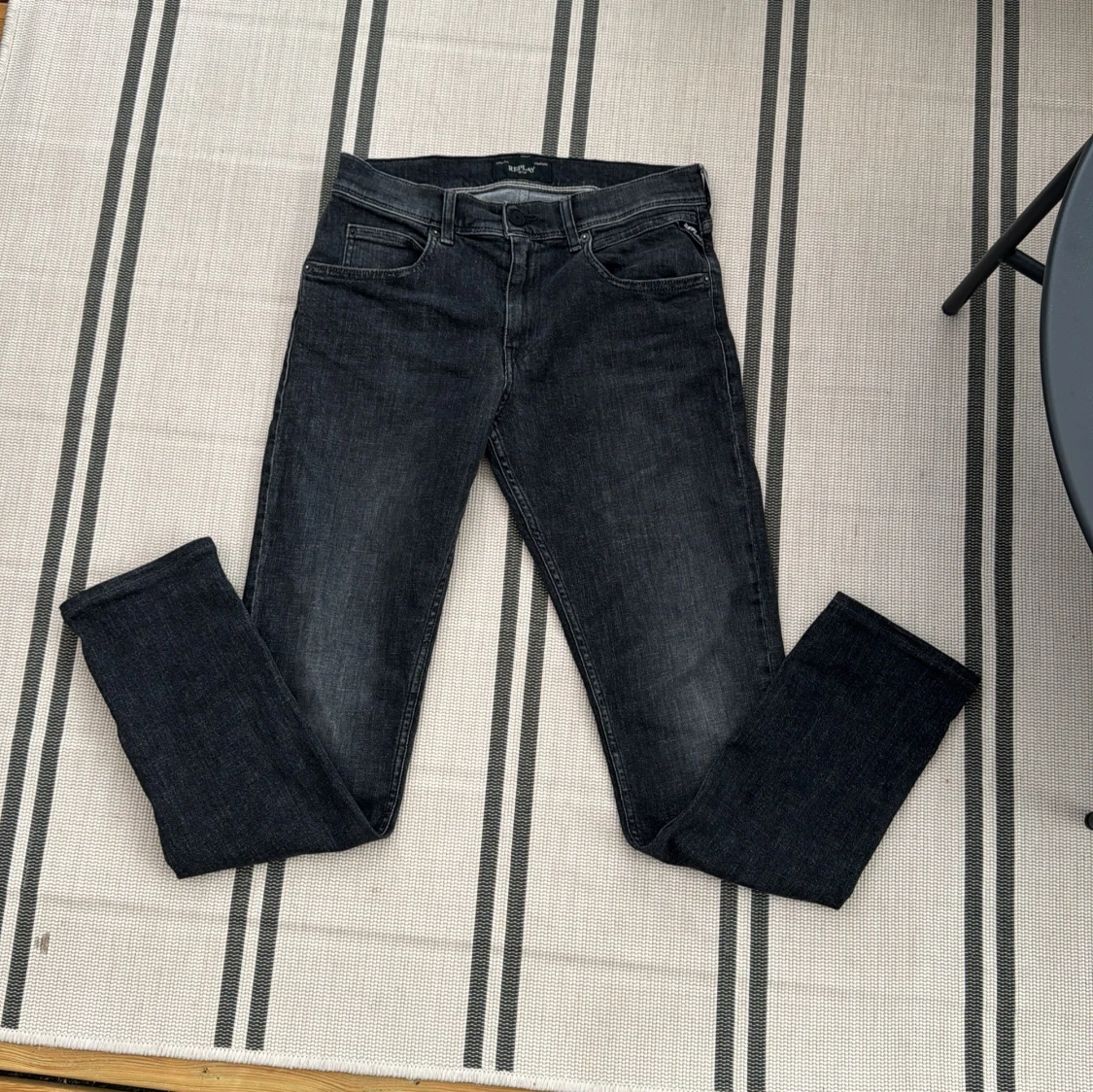 Snygga svarta jeans från Replay i rak modell. Jeansen har klassisk femficksdesign, normal passform och är tillverkade i mjukt denimtyg. Perfekta för dig som gillar en stilren look med mörka jeans. Skick=9/10 är sällan använda. Köpte dem för 749kr, säljer dem för 450kr. Vid frågor eller mer bilder är det bara att höra av sig. Priset går att diskuteras