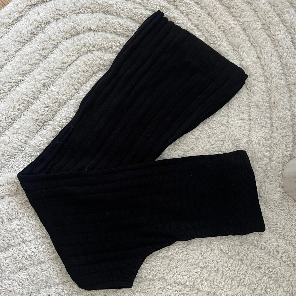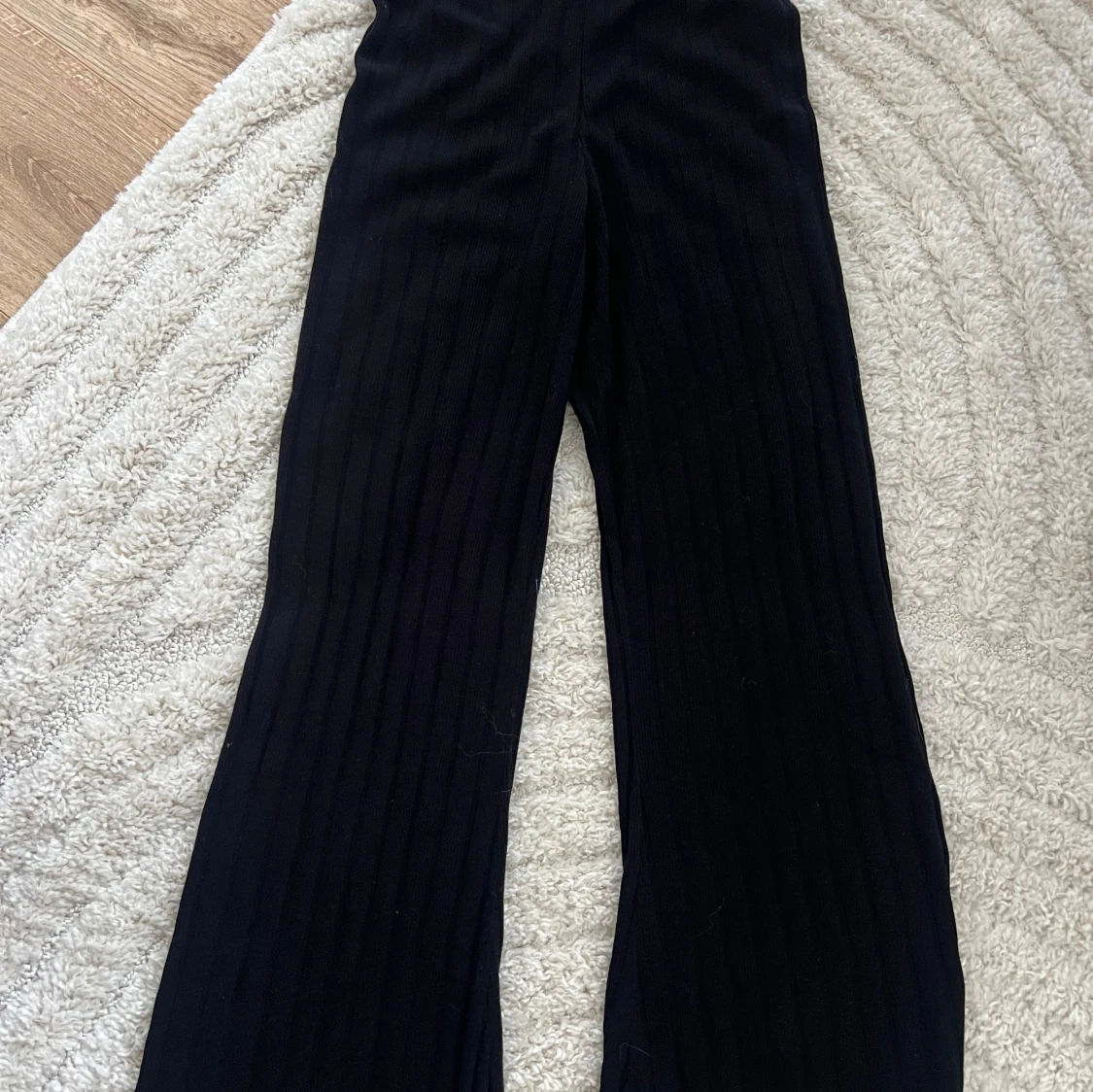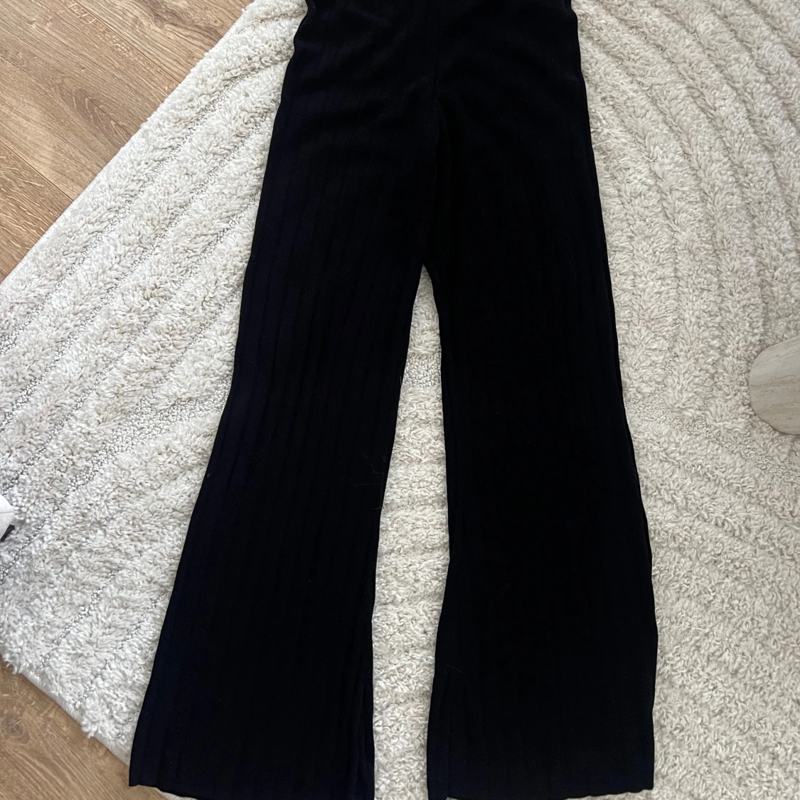 Snygga svarta byxor med ribbad textur. Byxorna har en loose passform och är perfekta för en stilren look. De är tillverkade i ett mjukt material som ger en bekväm känsla hela dagen.