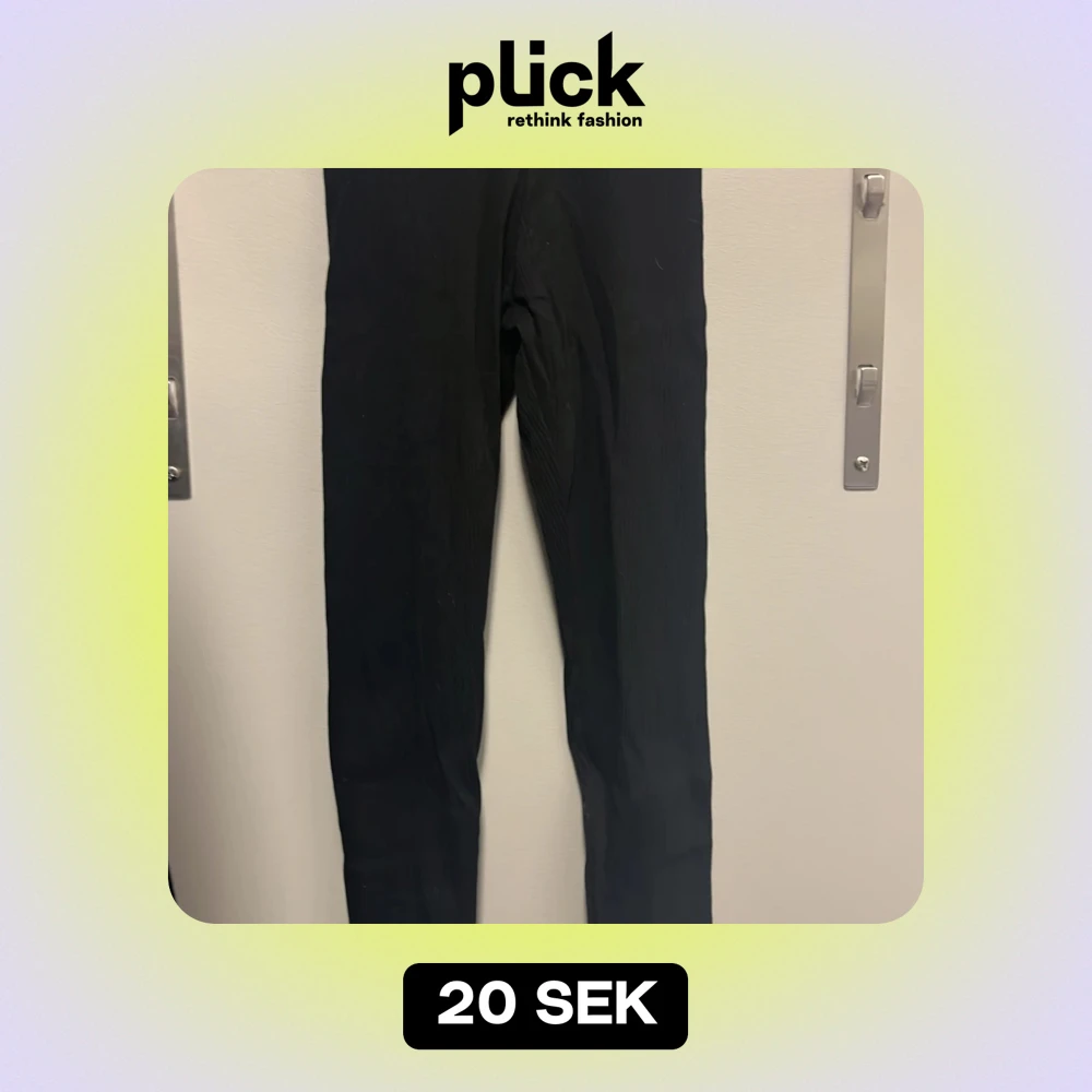 Säljer ett par svarta ribbade leggings från H&M Divided i storlek XS. De är tillverkade av 95% bomull och 5% elastan, vilket gör dem både bekväma och stretchiga. Perfekta för en avslappnad stil eller som basplagg i garderoben. Använda men i bra skick.