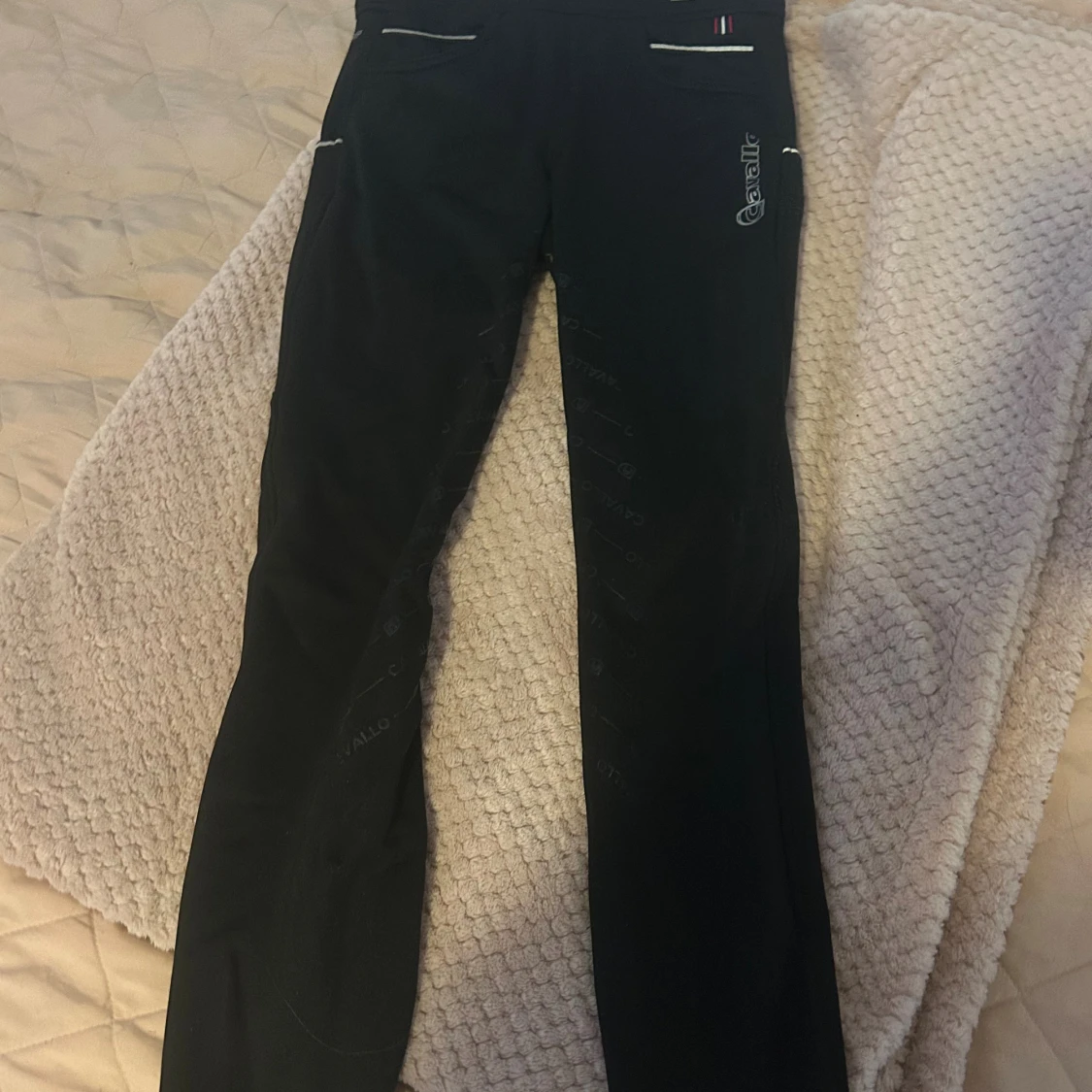 Svarta ridbyxor från Cavallo med silikongrepp och fleecefodrad insida. Byxorna har vita detaljer vid fickorna och logga på låret. Perfekta för kalla dagar i stallet och har en tight passform som ger bra rörelsefrihet.