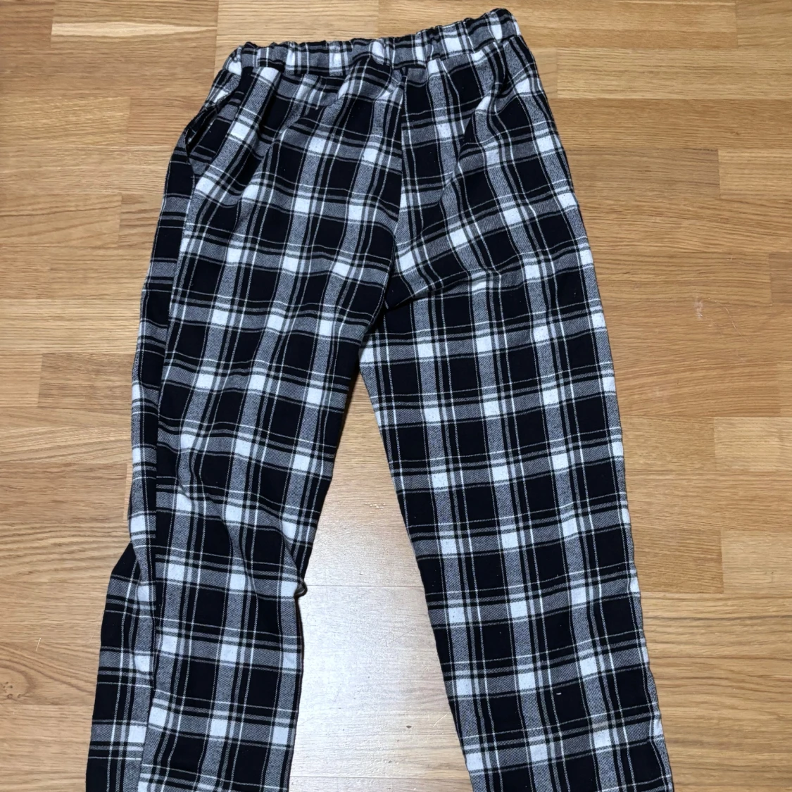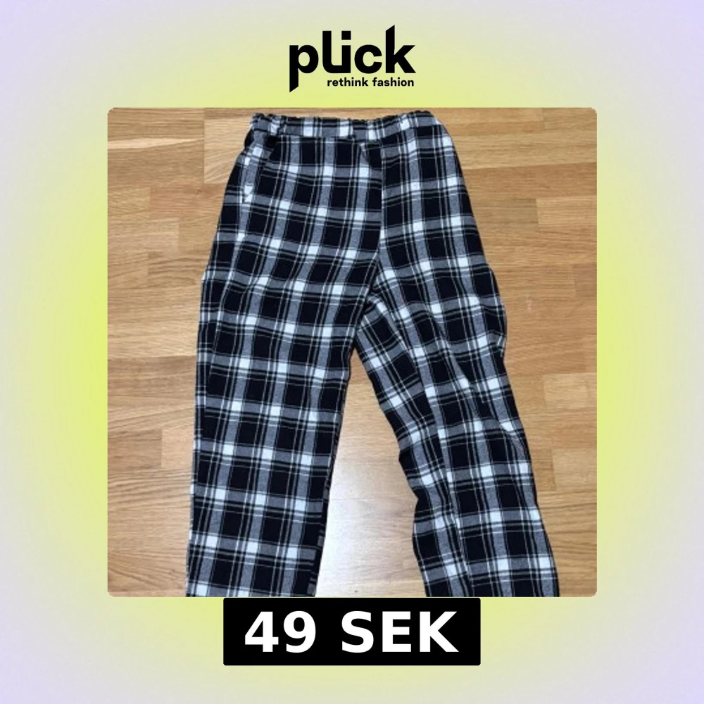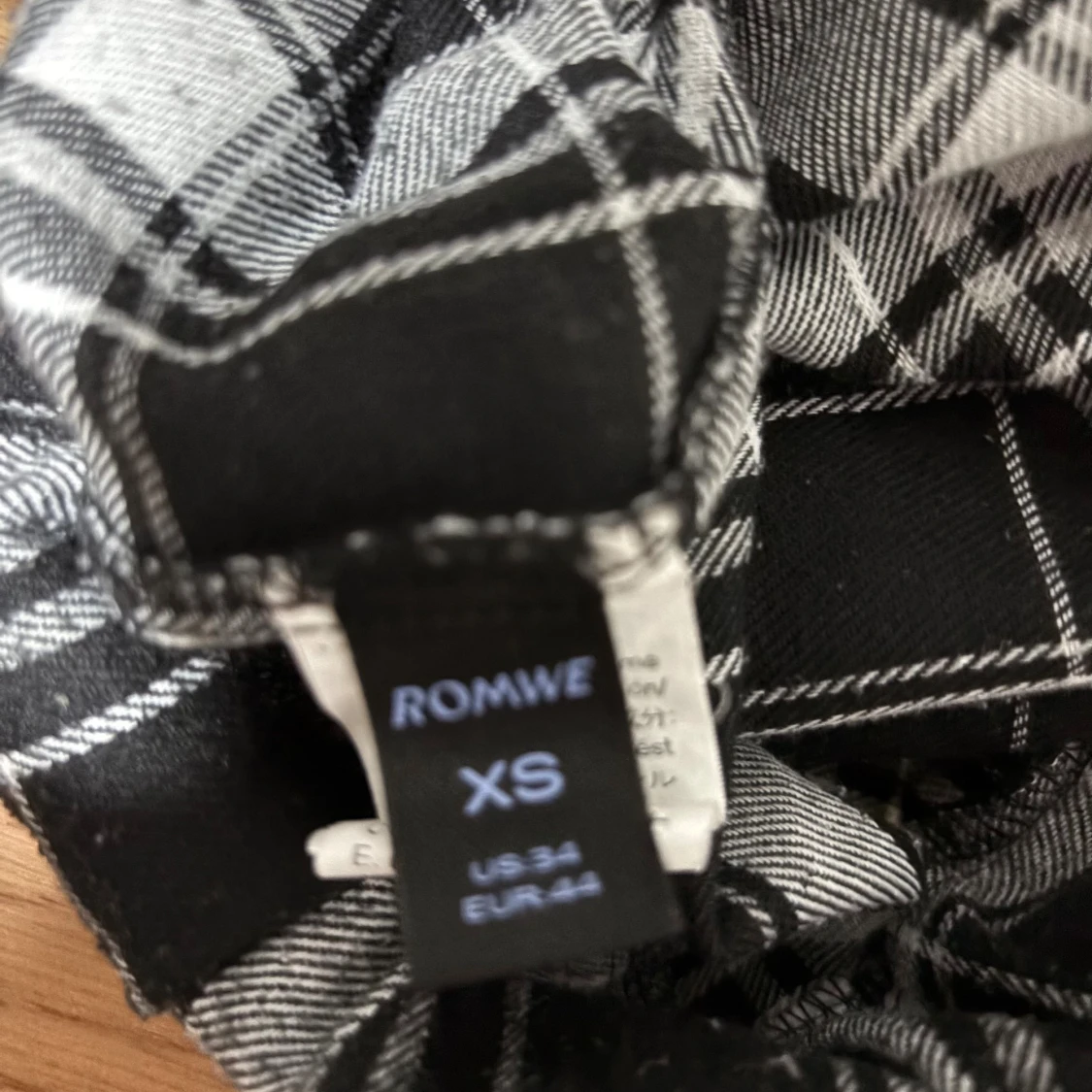 Svart/vita rutiga byxor från Romwe i storlek XS. Byxorna har elastisk midja och raka ben, perfekta för en chill och avslappnad stil. Tillverkade i mjukt material som känns skönt mot huden.