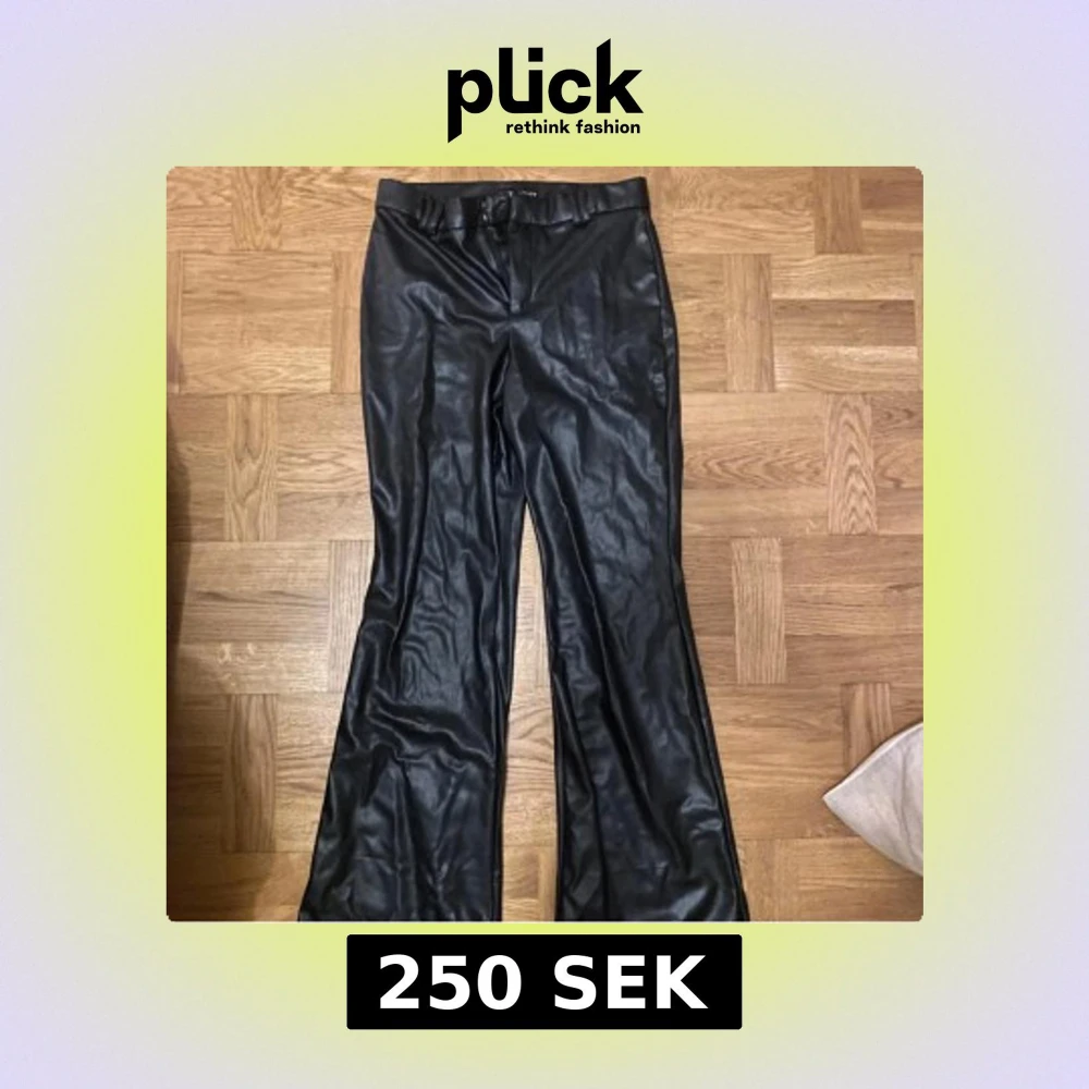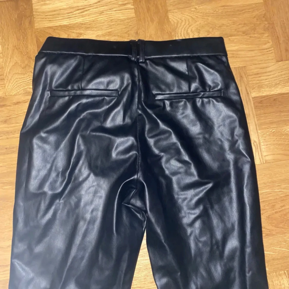 Säljer ett par svarta skinn byxor som är mid/highwaist och bootcut. Använt en del gånger men ändå i bra skick.