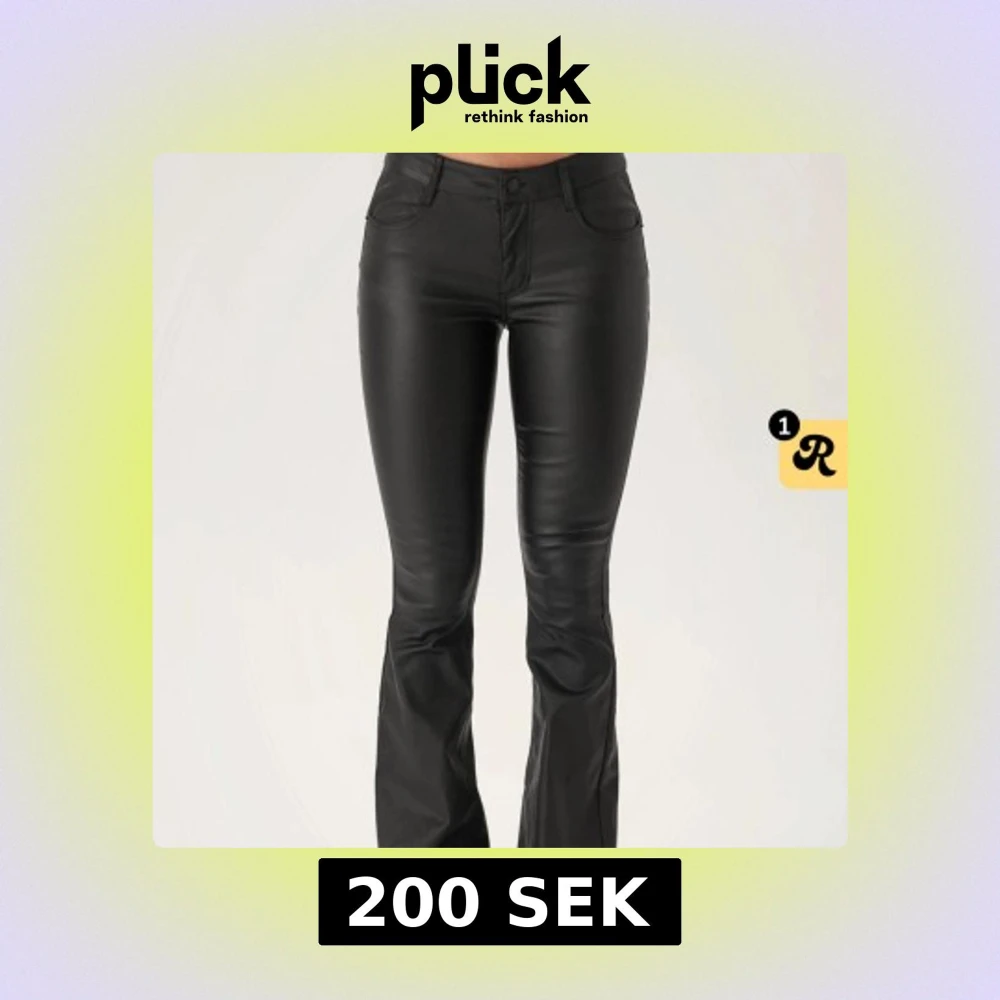 Snygga svarta byxor i skinnimitation med bootcut passform och slits nertill på benen.