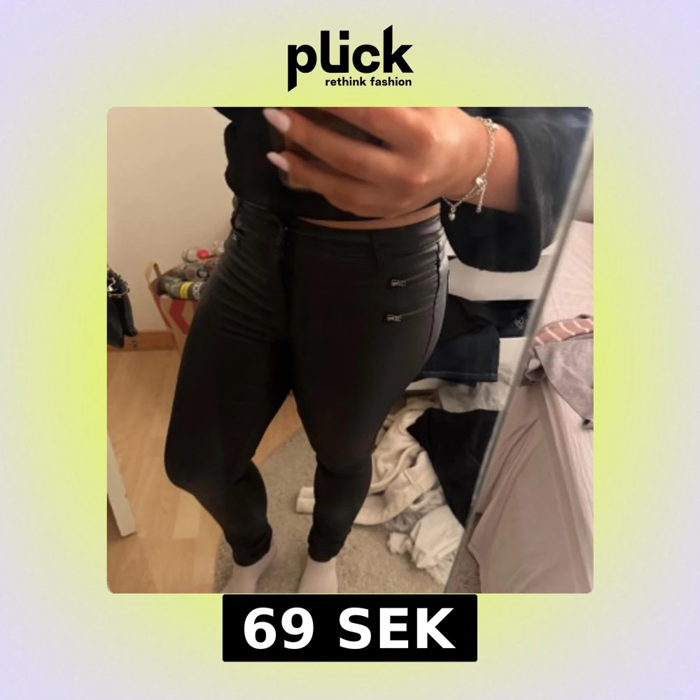 Säljer ett par svarta skinny byxor med snygga detaljer framtill