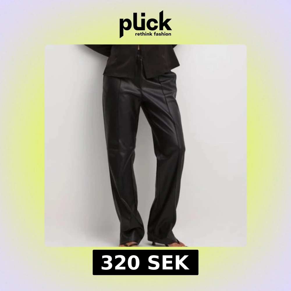 Snygga svarta skinnbyxor med hög midja och rak passform. Byxorna har en stilren design med diskreta fickor och bälteshällor. Perfekta för en trendig look.