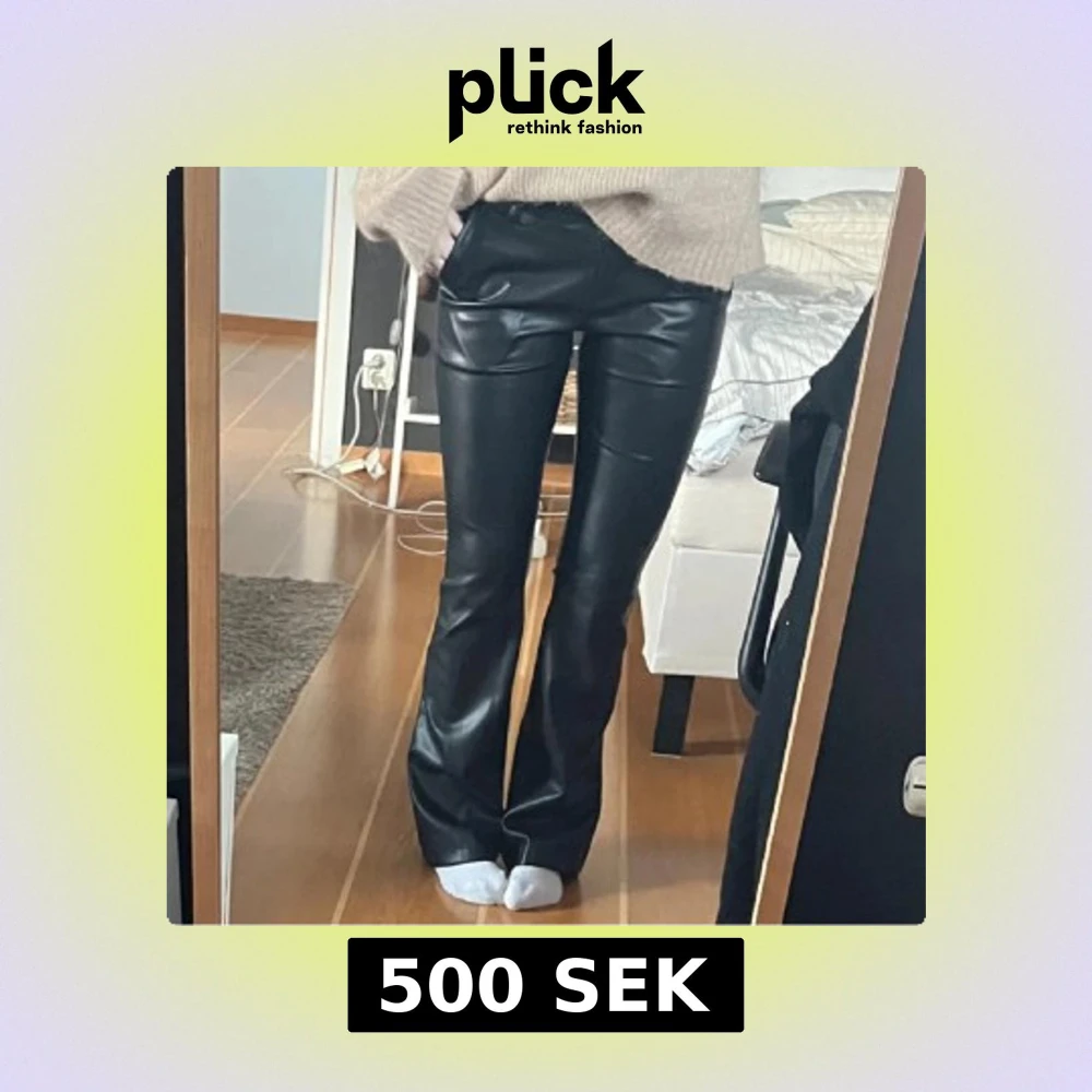 Snygga svarta skinnbyxor med låg midja och bootcut-stil