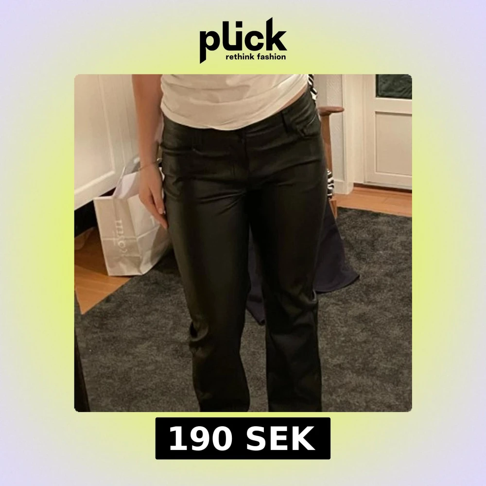 Snygga svarta skinnbyxor från Bik Bok i storlek 40. Dock små i storleken då jag vanligtvis har 38 på jeans o ”stela” byxor. Byxorna har en tight passform och är låg/medellåg midjade med knappar och dragkedja framtill. Näst intill helt oanvända och helt utan anmärkningar. Säljer då dem ej används💕