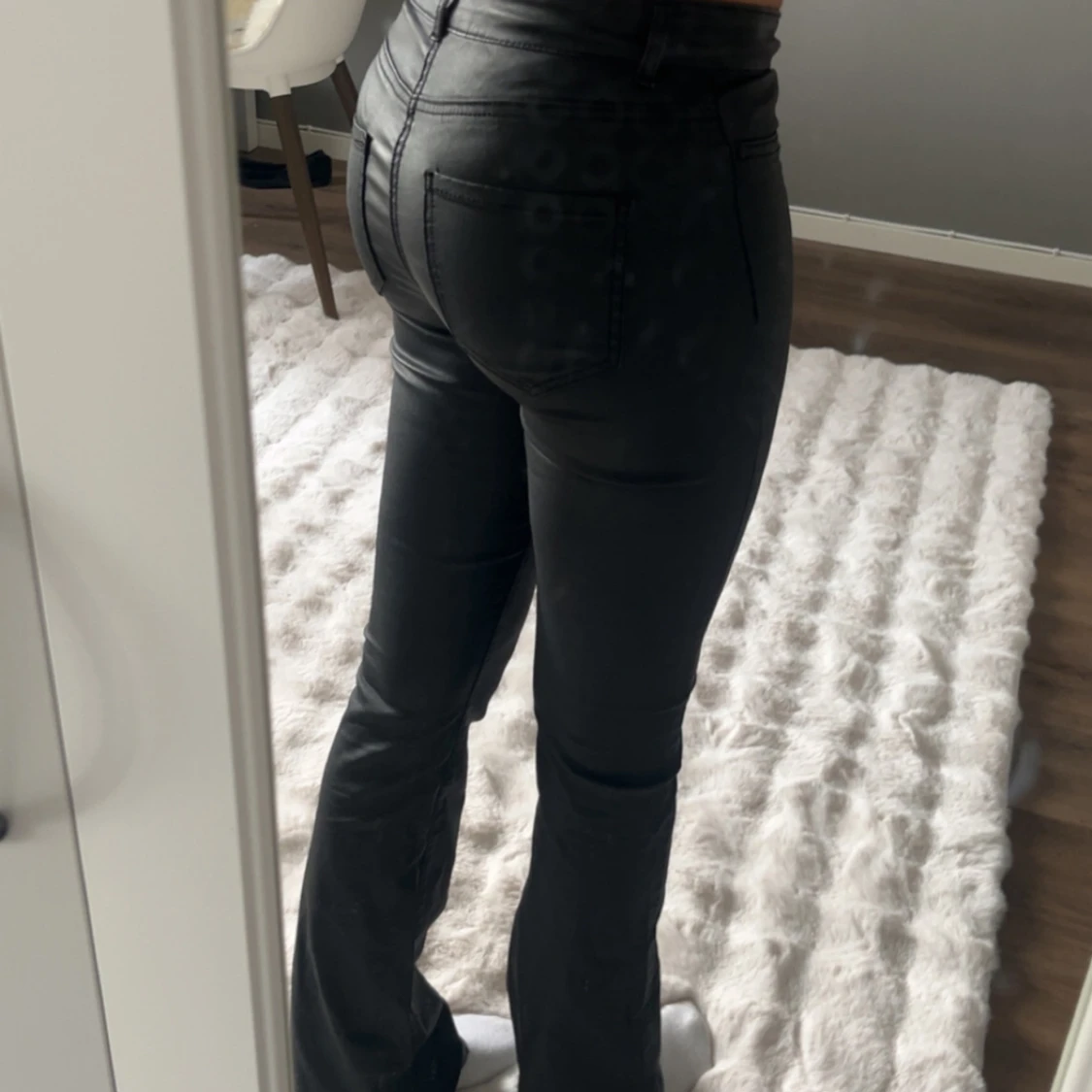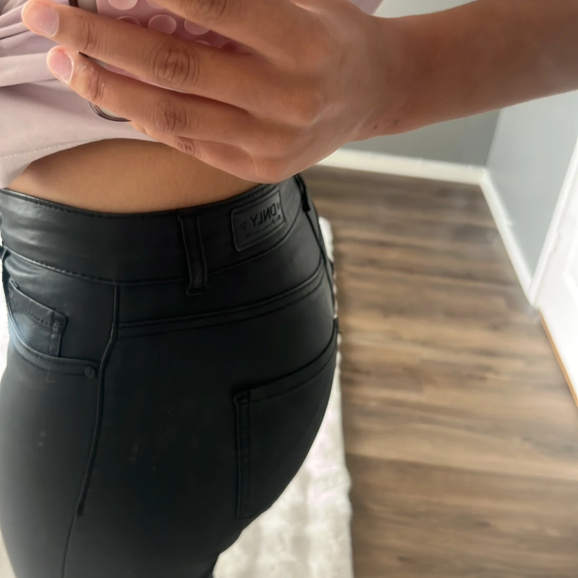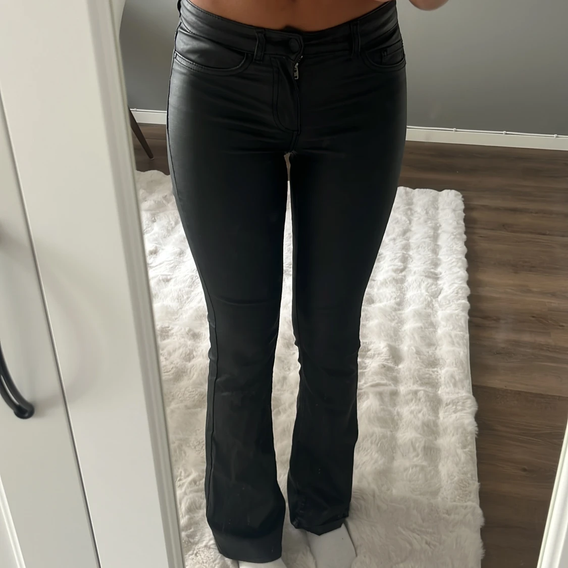 Säljer dessa slutsålda svarta skinn byxor från ONLY i strl xs/32. Andvända en gång säljer pågrund av att jag inte andvänder dem! Jätte bra skick💕