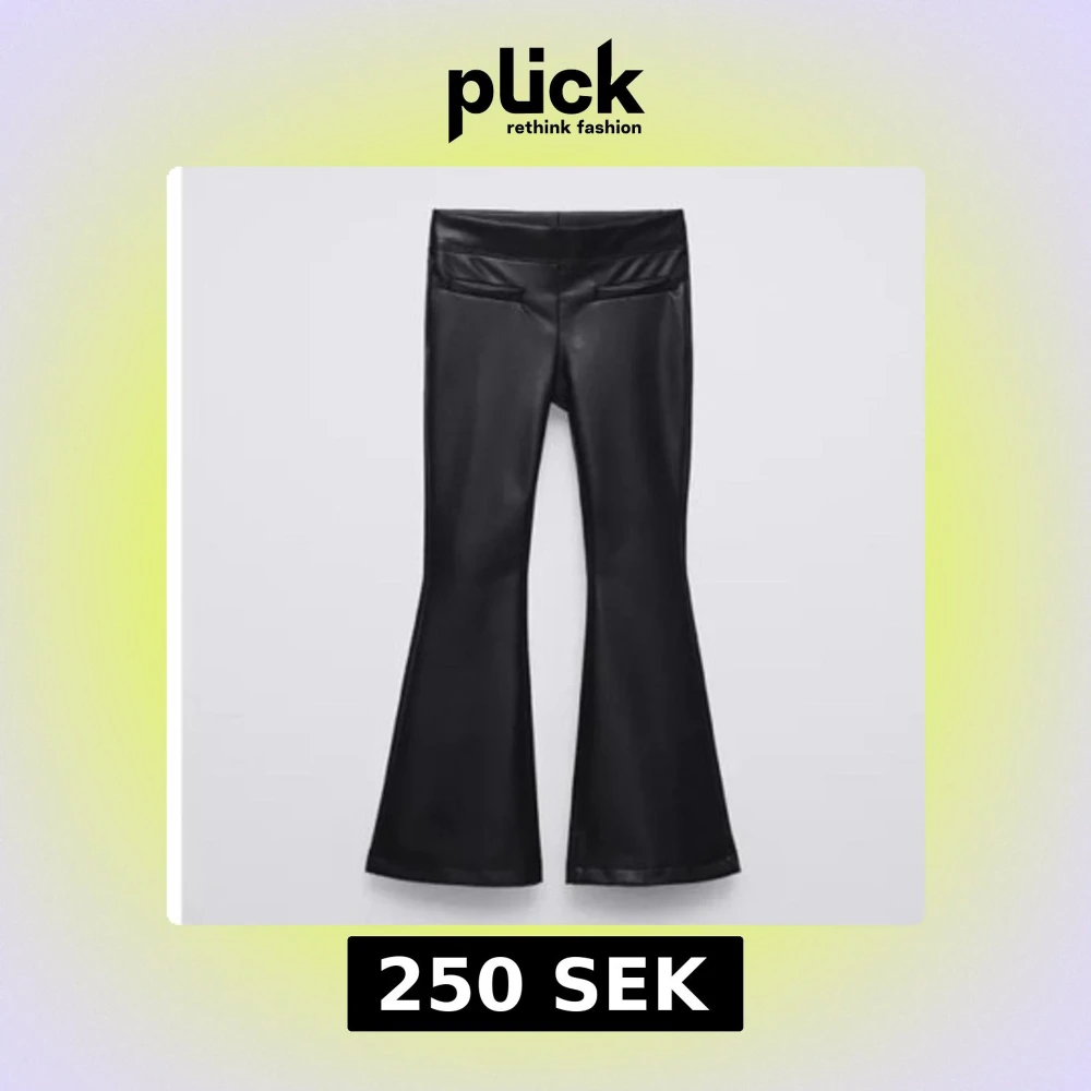 Snygga svarta skinnbyxor med bootcut-design. Helt nya och endast använda en gång💕 skriv för mer info och bilder💕