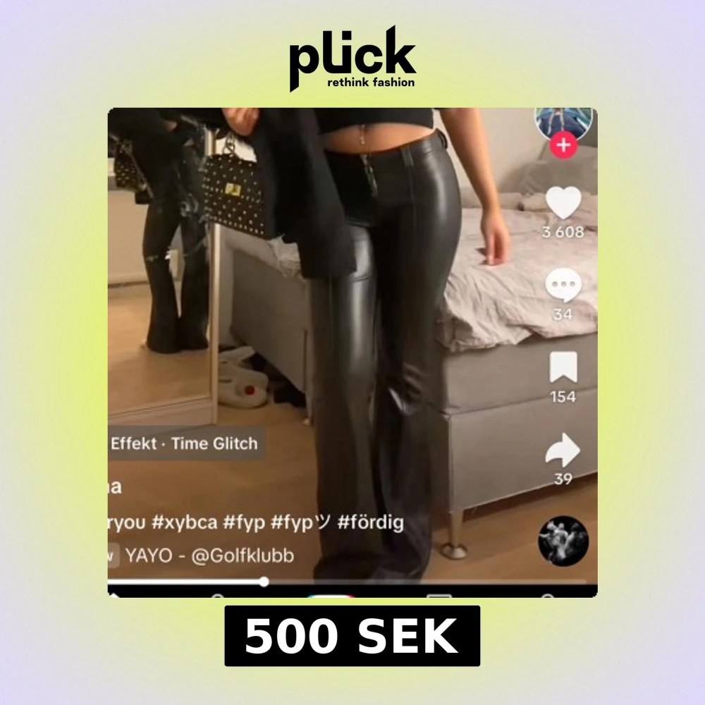 Snygga svarta skinnbyxor med dragkedja framtill. Byxorna har en tight passform och ger en cool look. Perfekta för en trendig outfit. Slutsålda! (Första bilden är lånad andra är min)