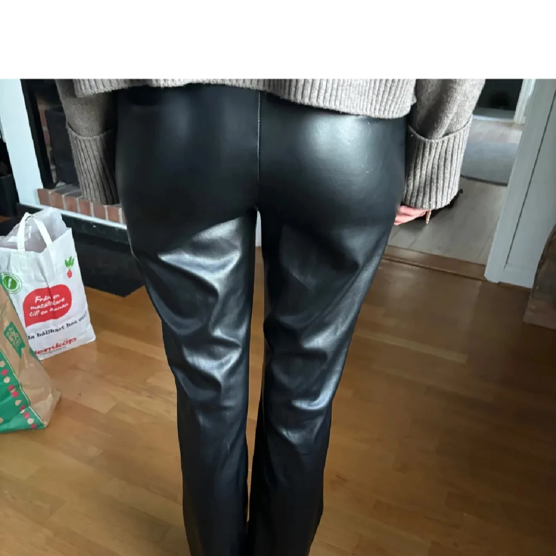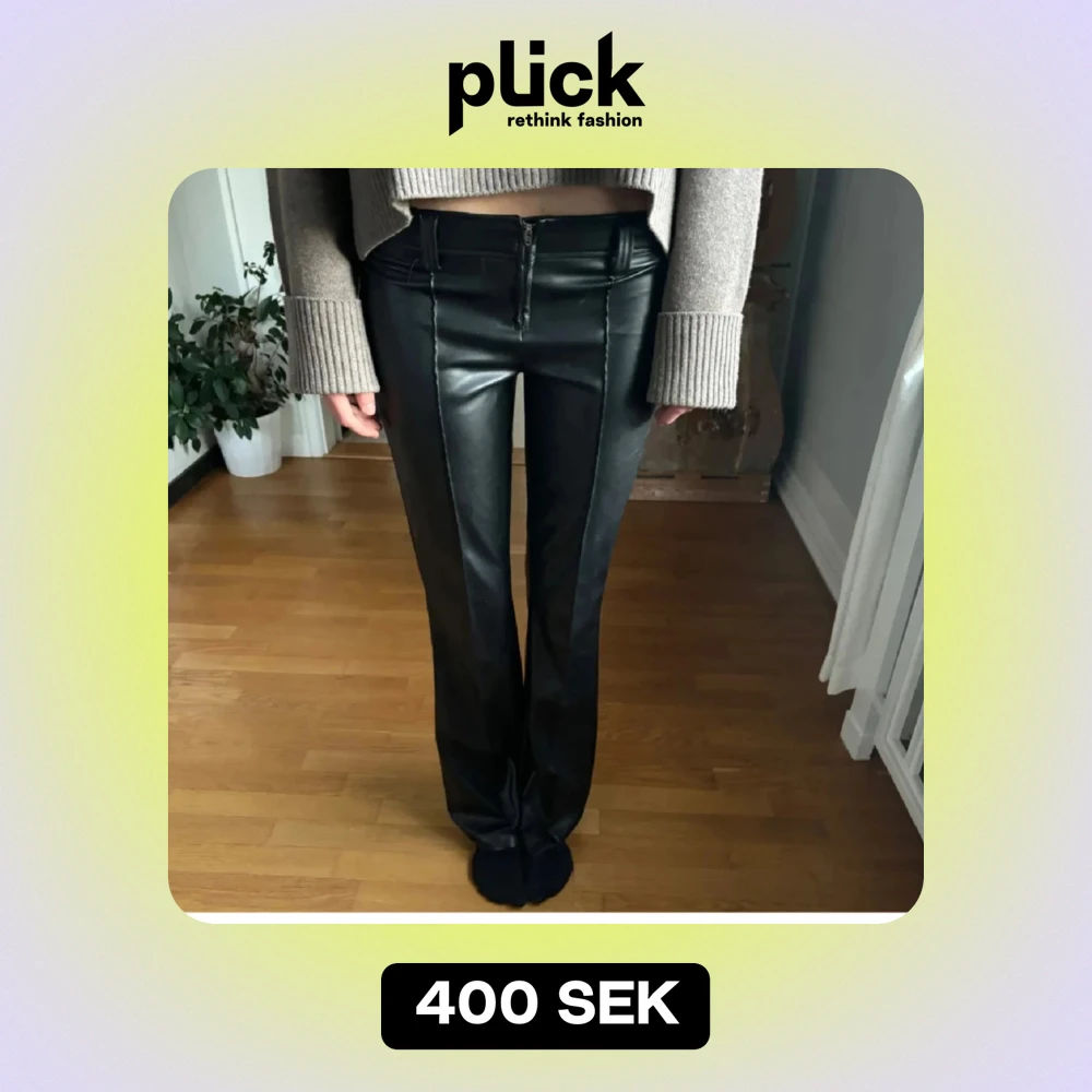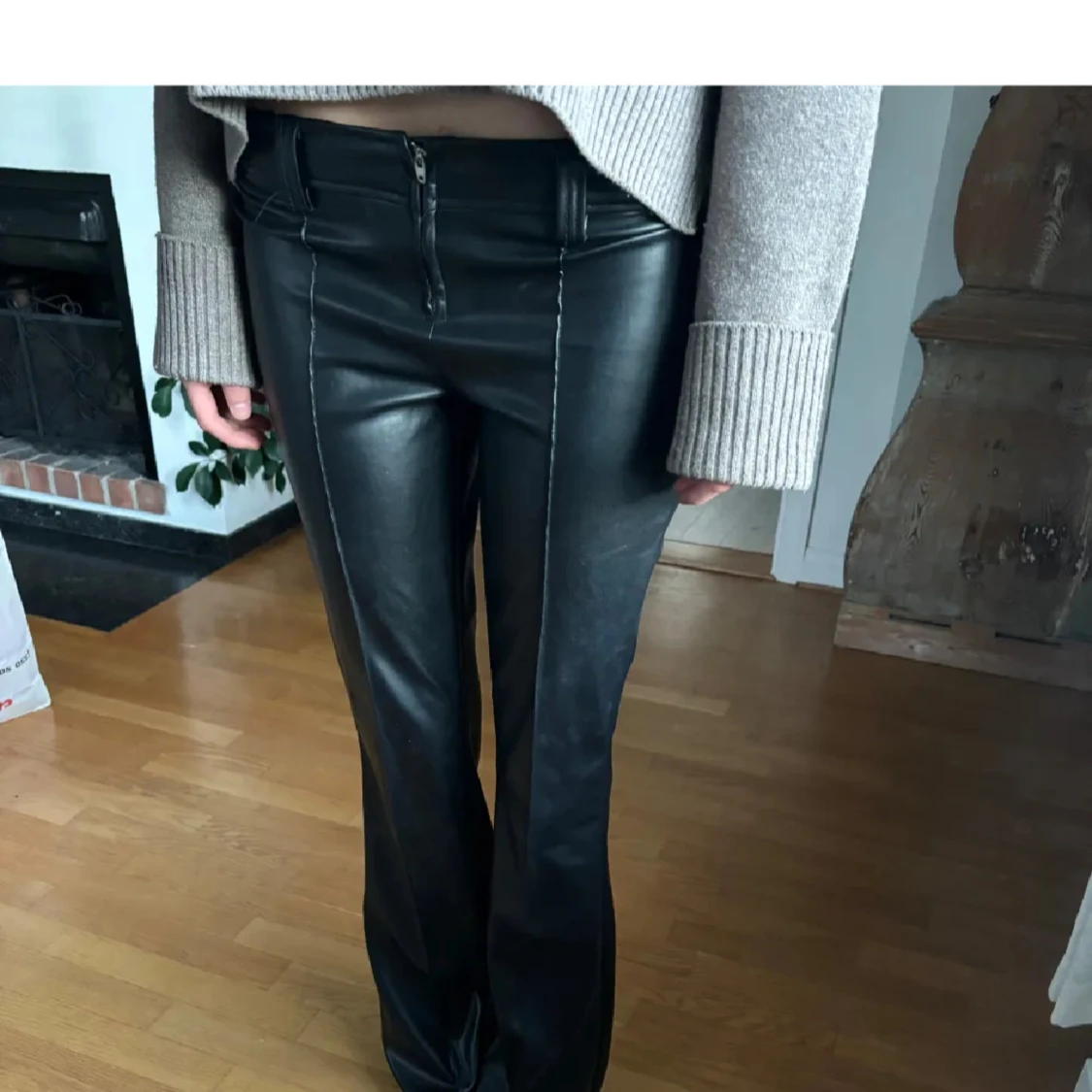 Snygga svarta skinnbyxor i mycket bra skick. De är lågmidjade och har en dragkedja framtill. Byxorna har en straight passform. Perfekta för höst och vinter!🤩🤩🤩