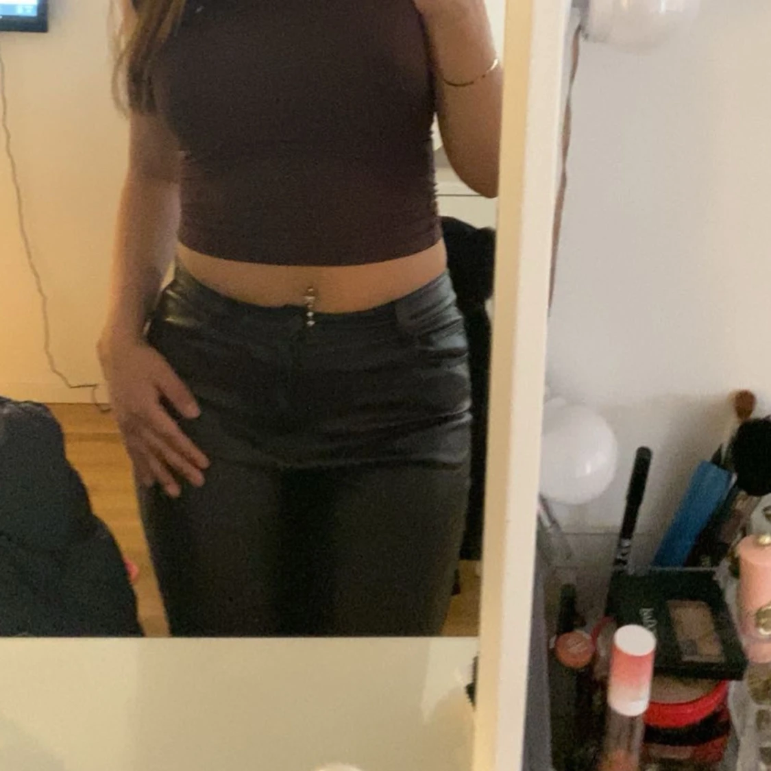 Snygga svarta skinnbyxor som jag köpte från Plick men säljer pga av inte min stil.