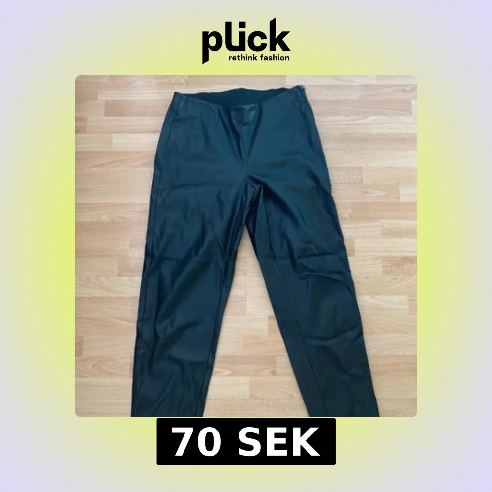 Snygga svarta skinnimitation byxor från Noisy May med smal passform, resår och dragkedja på sidan. Byxorna har hög midja och elastisk linning för extra komfort. Perfekta för dig som vill ha en edgy look med stilren känsla.