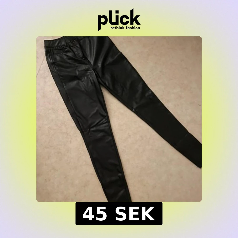 Snygga svarta leggings i skinnimitation med hög midja och tight passform. Byxorna har dragkedja och knapp framtill samt smala ben som sitter som en andra hud. Från new yorker
