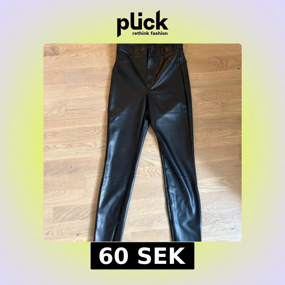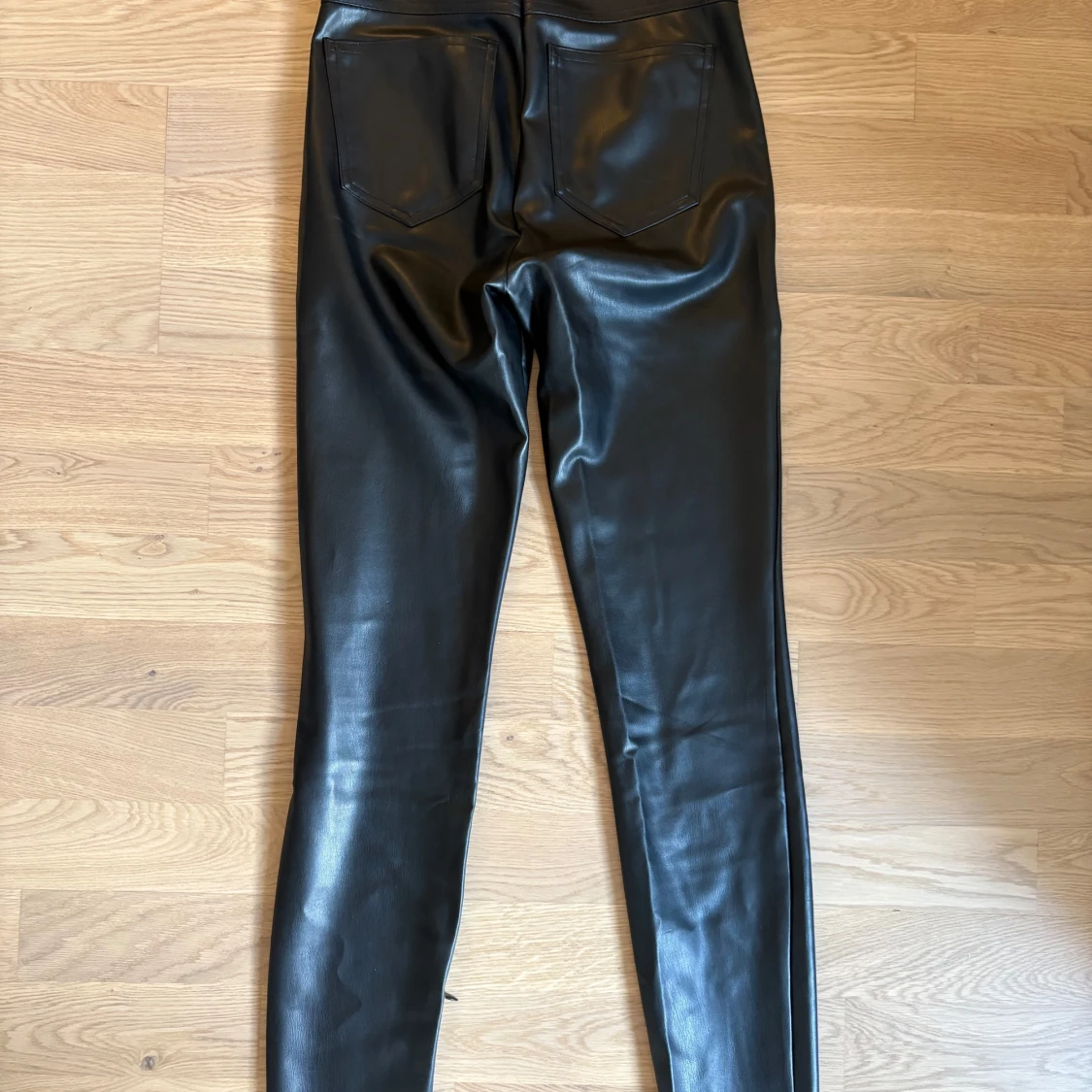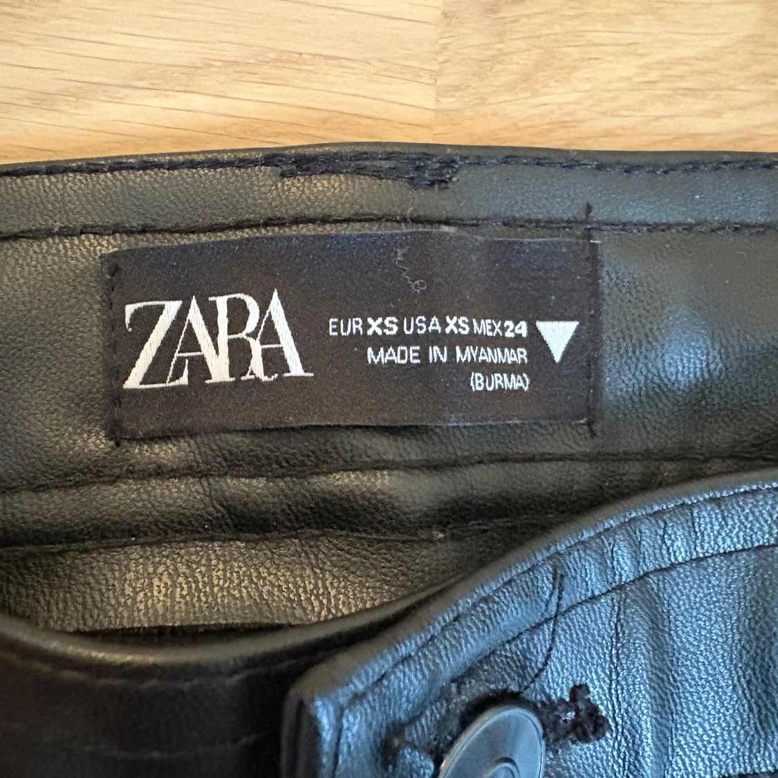 Snygga svarta skinny byxor från Zara i skinnimitation. Hög midja, klassiska fickor bak och dragkedjor vid bensluten för extra edge. Perfekta för dig som vill ha en stilren och trendig look med lite attityd.