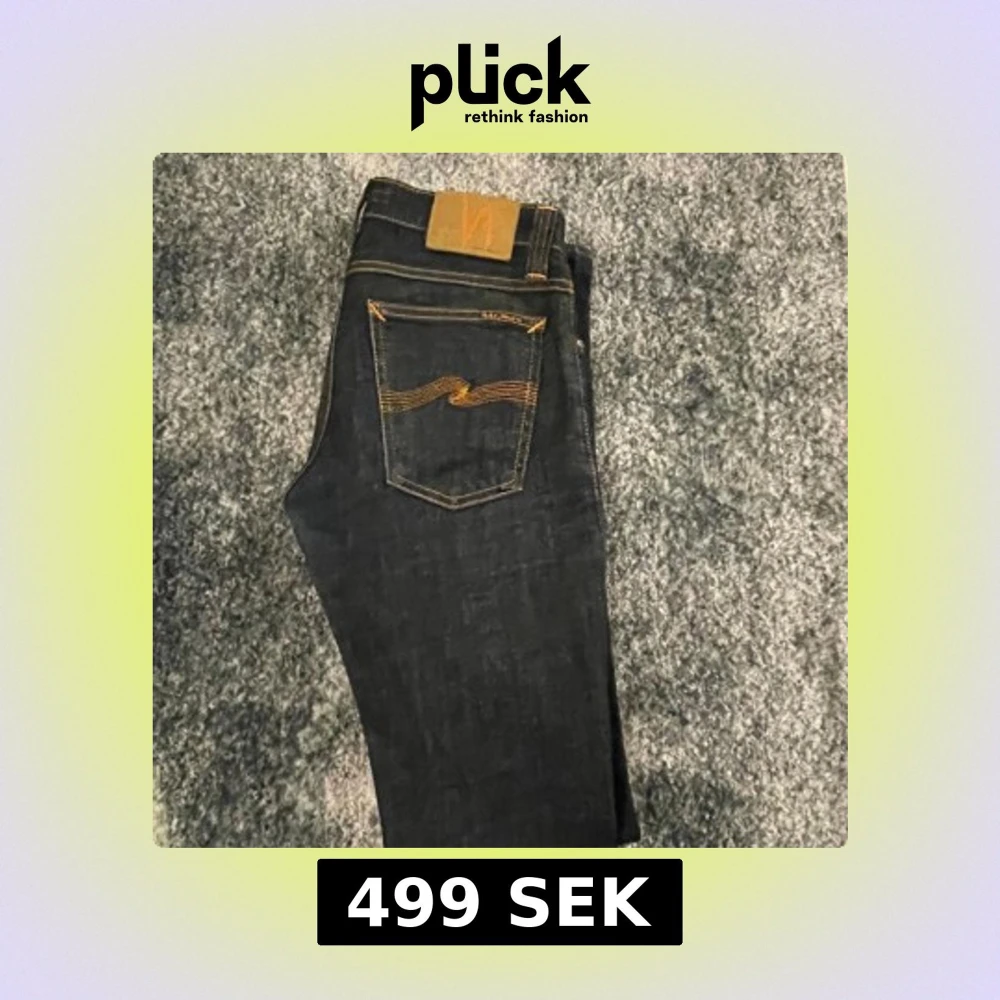 Snygga svarta jeans från Nudie Jeans med klassisk orange söm på bakfickorna och läderpatch med logga. Modellen är skinny fit med smal passform och lång benlängd. Perfekt för dig som gillar stilrena och tidlösa jeans.