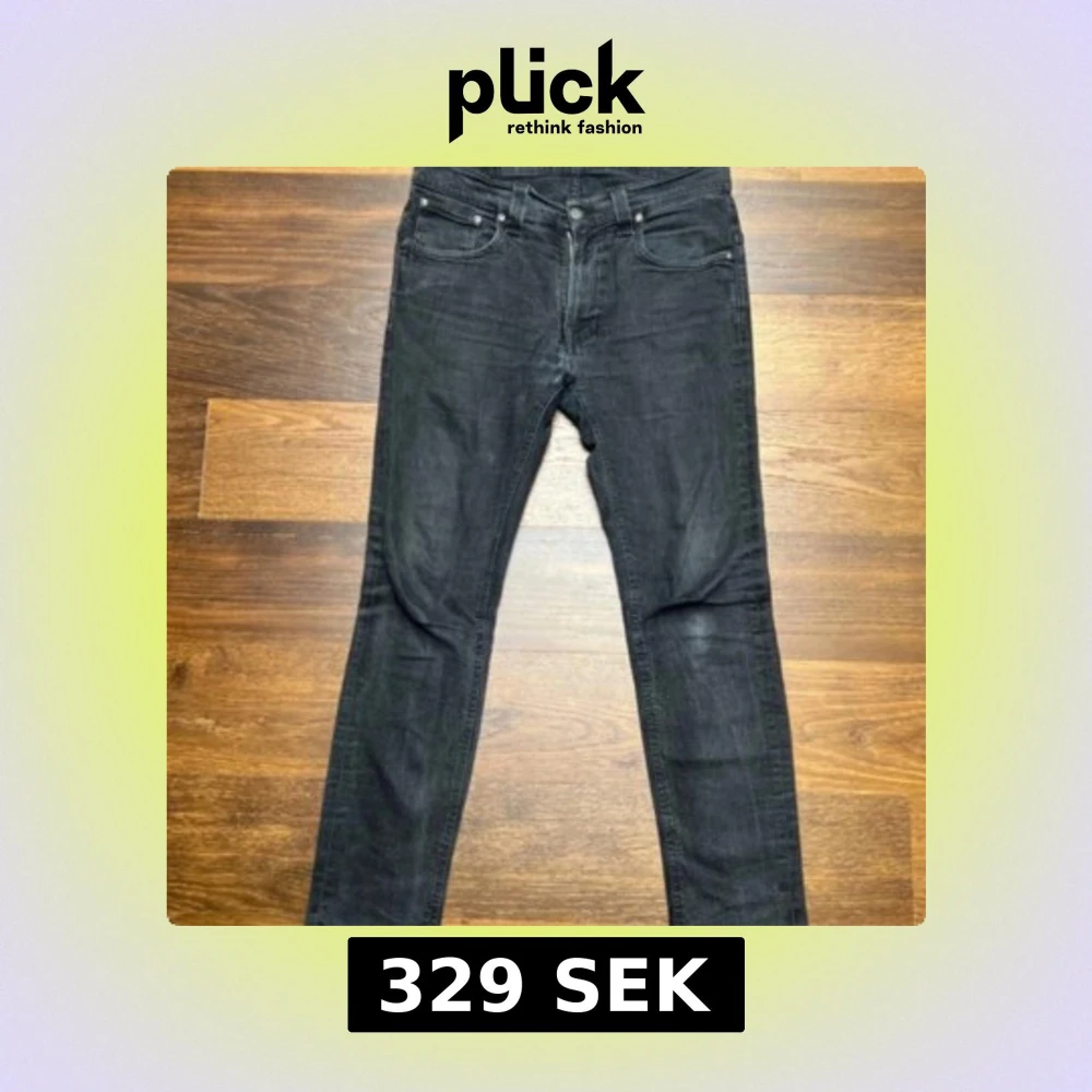 Säljer dessa fina Nudie Jeans i storlek 33/34! Längd 105 cm, bredd 40 cm. De har en defekt mellan benen som man ser på sista bilden. Priset är inte hugget i sten. Hör av dig vid frågor! Fraktar oftast samma dag😁