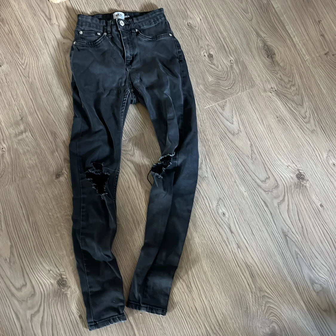 Svarta skinny jeans från Levi's med klassisk femficksdesign och slitningar vid knäna för en edgy look. Hög midja och smal passform som sitter tajt längs benen. Perfekta för dig som gillar en tuff och trendig stil.