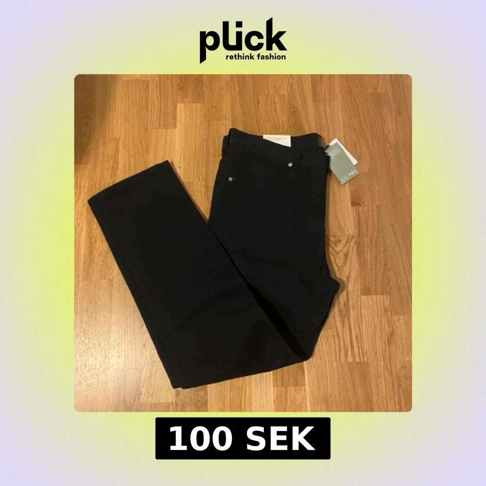 Svarta slim fit byxor från H&M i storlek 36. Snygg och stilren modell med raka ben och klassisk femficksdesign. Tillverkade i bomullsmix med en mjuk känsla och stretch för extra komfort. Perfekta för en clean och enkel look.