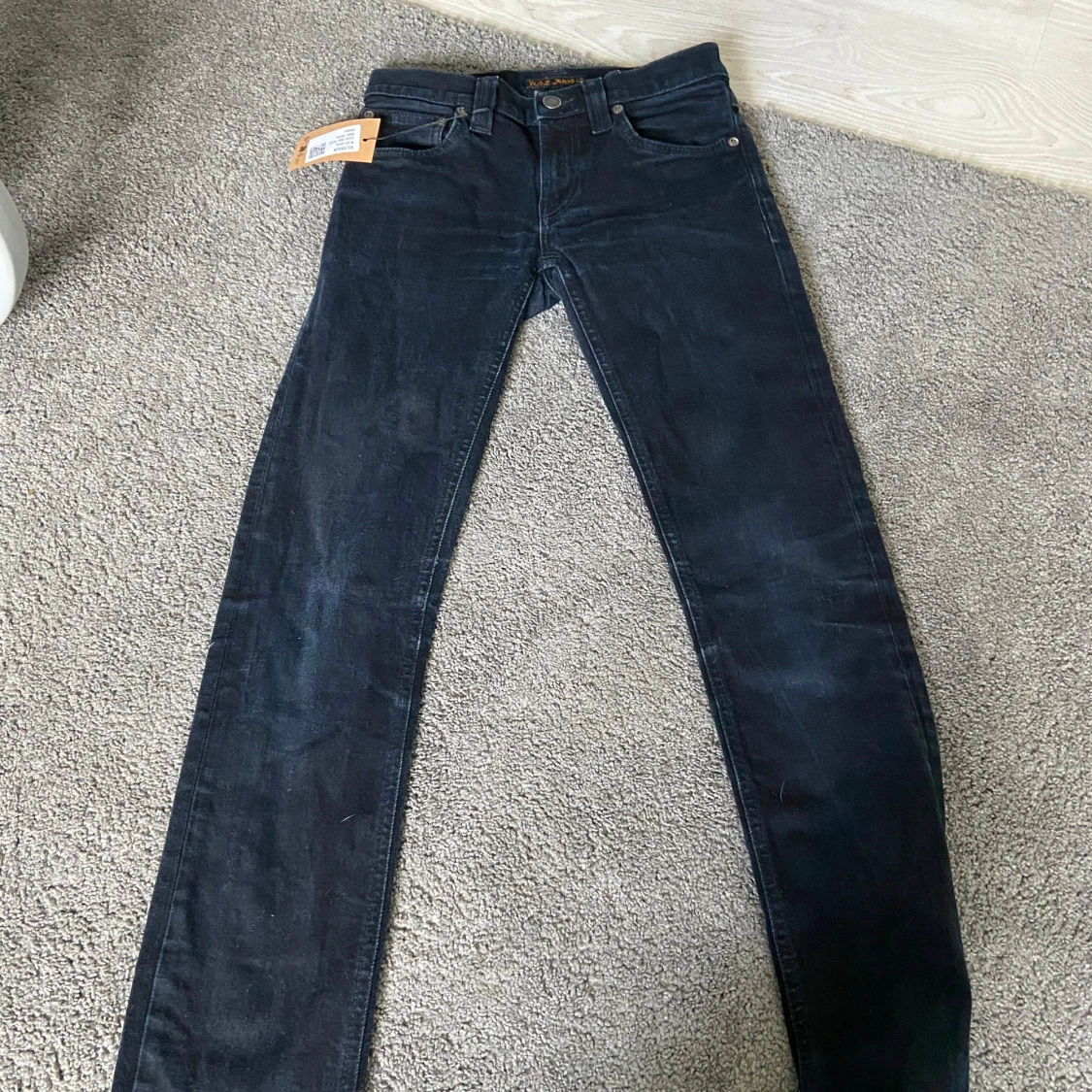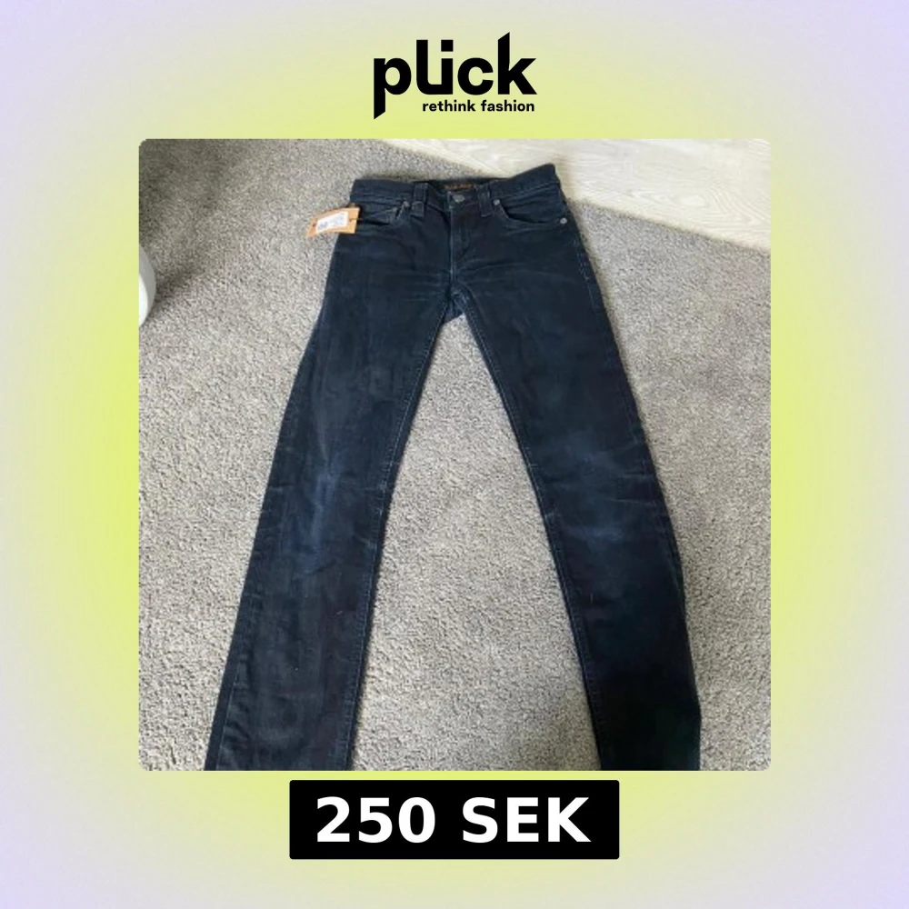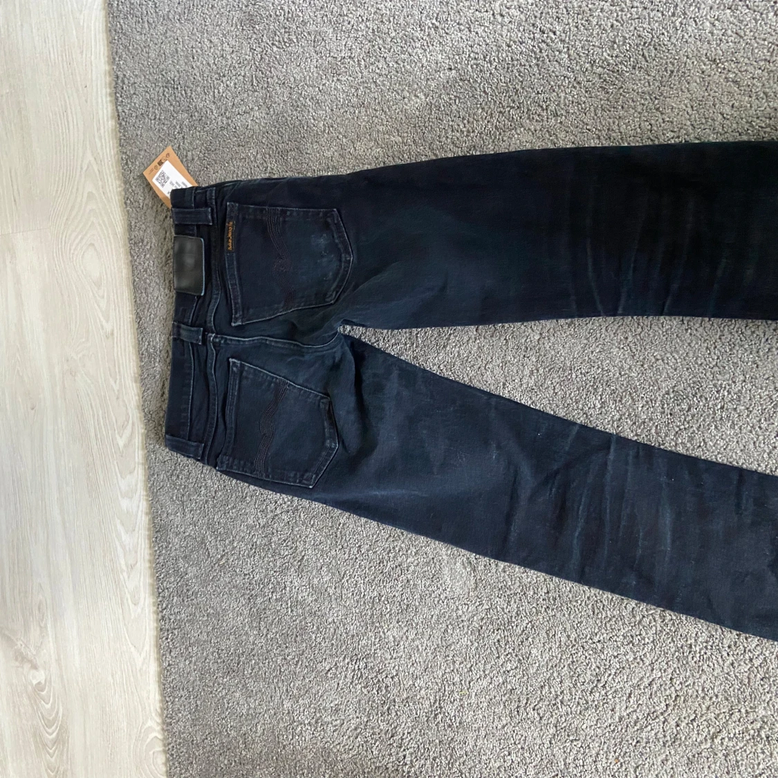Snygga svarta jeans från Nudie Jeans med klassisk femficksdesign och slim fit passform