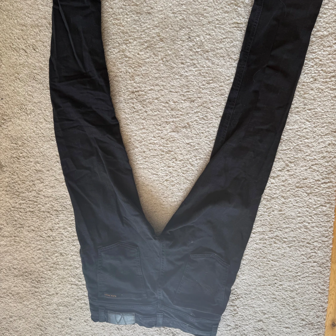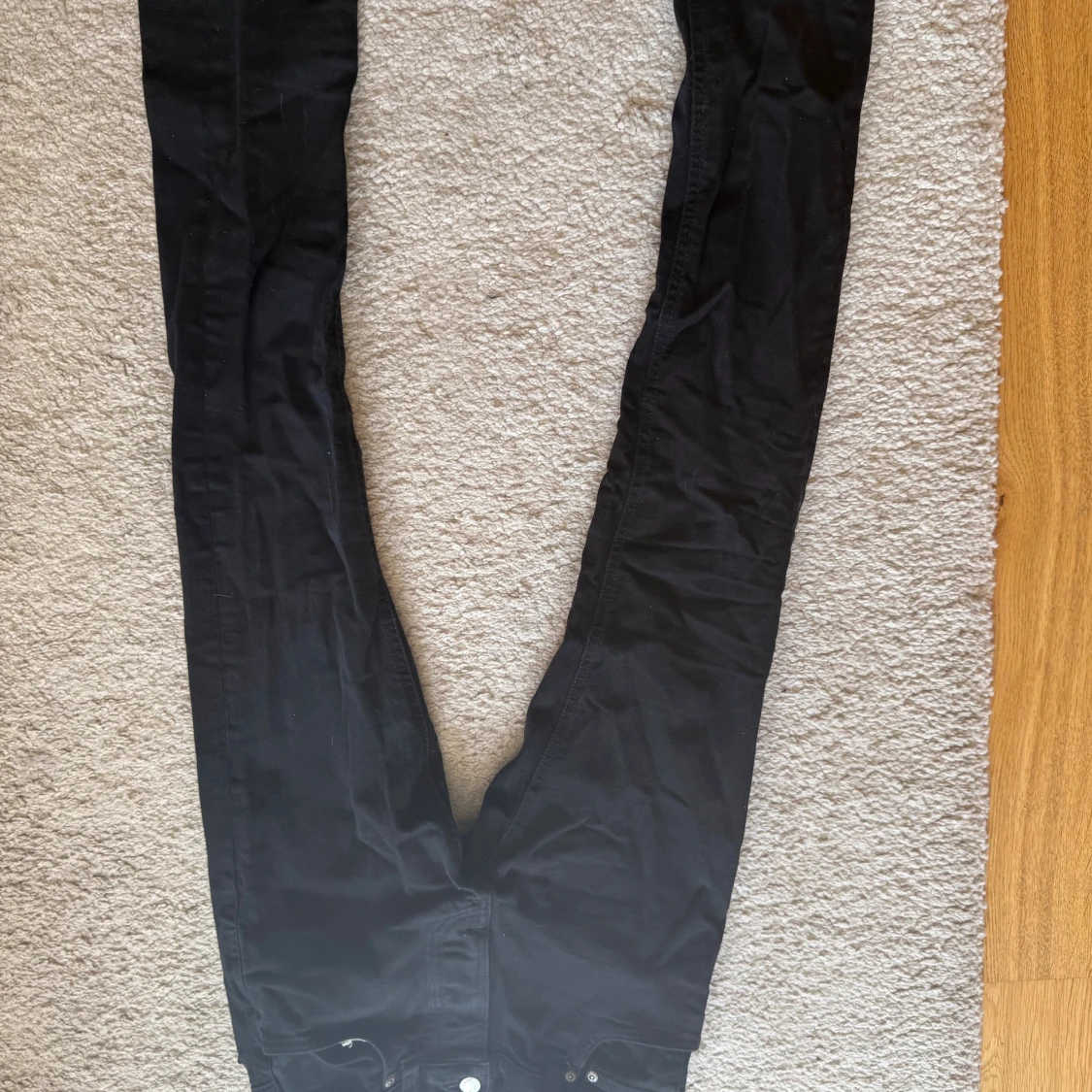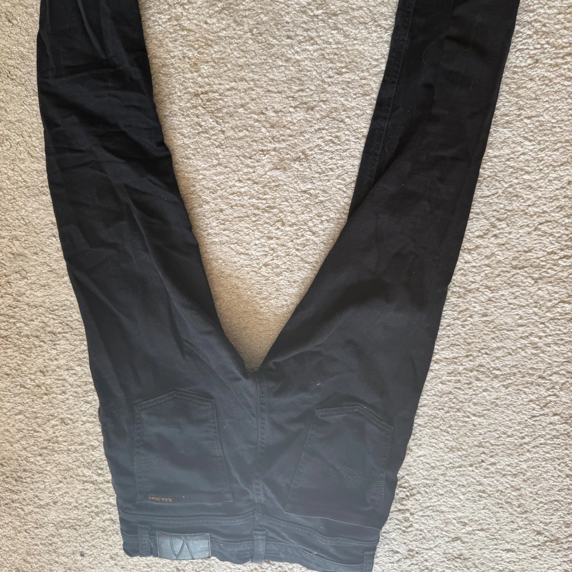 Svarta jeans från nudie med klassisk femficksdesign och smal passform. Jeansen har en enkel look med svarta sömmar och silverfärgade knappar. Perfekta för dig som gillar en stilren och tajt siluett.