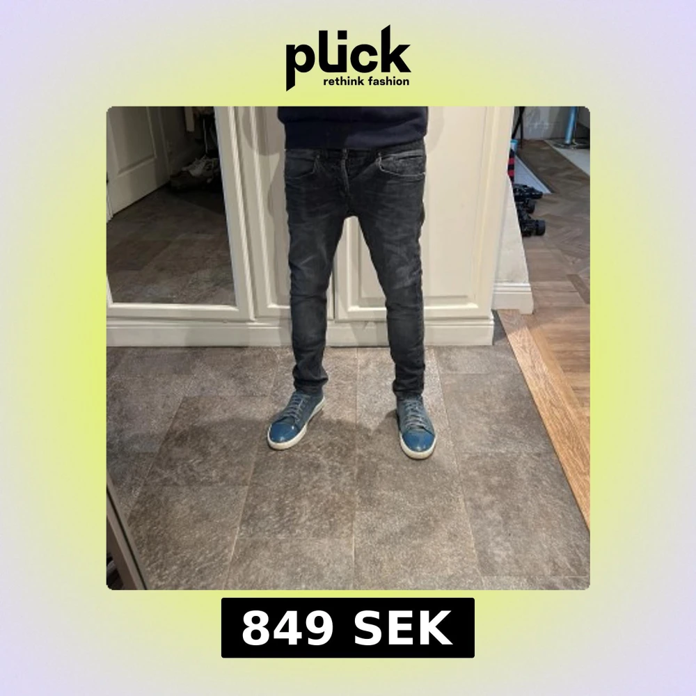 Säljer ett par svarta jeans från dondup med smal passform och väldigt sköna att ha på. Har använt dessa några gånger och känner nu för att sälja dem! Waist 30 length 31!