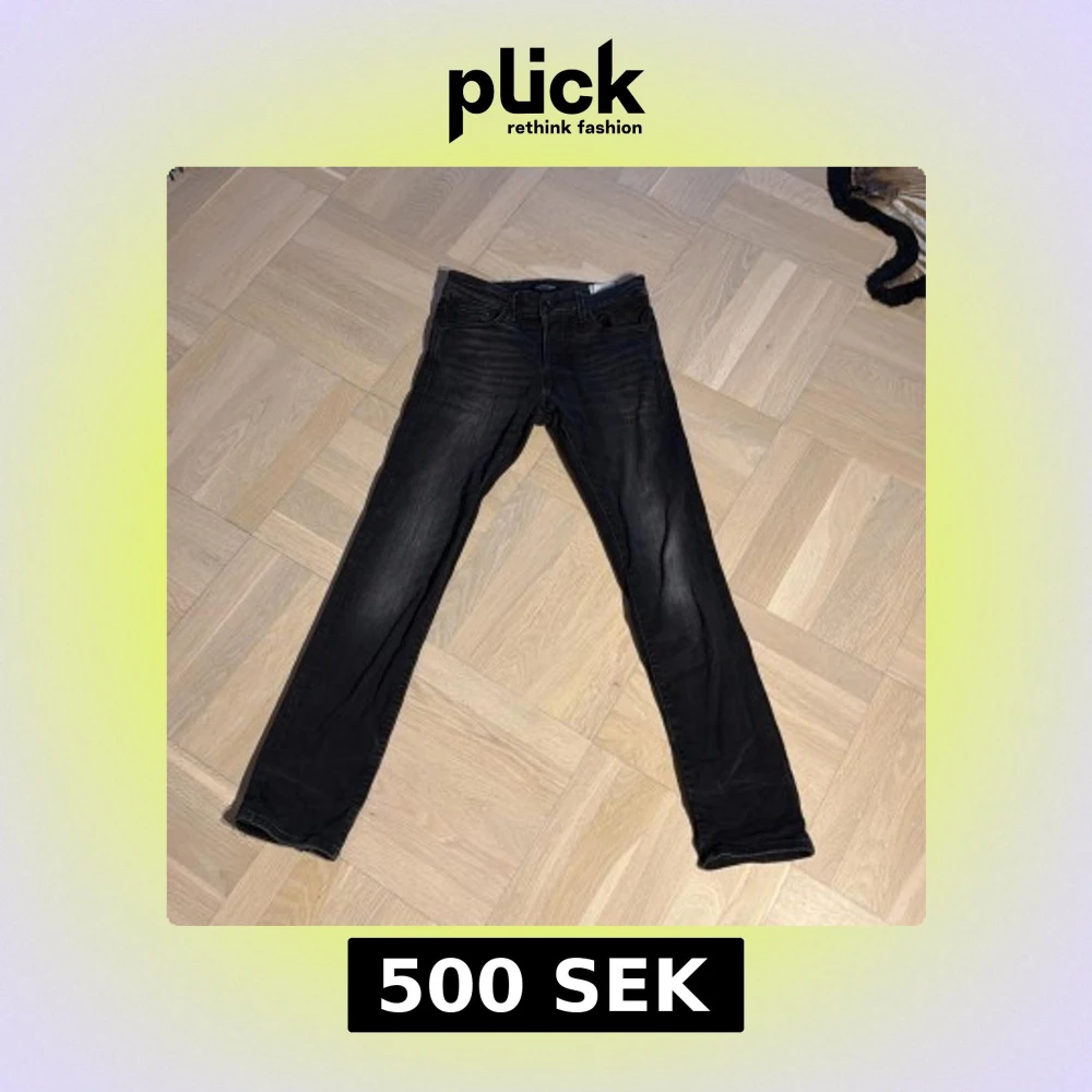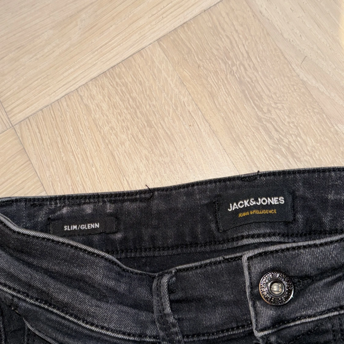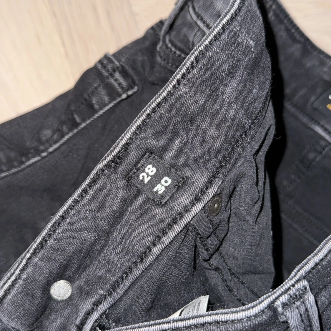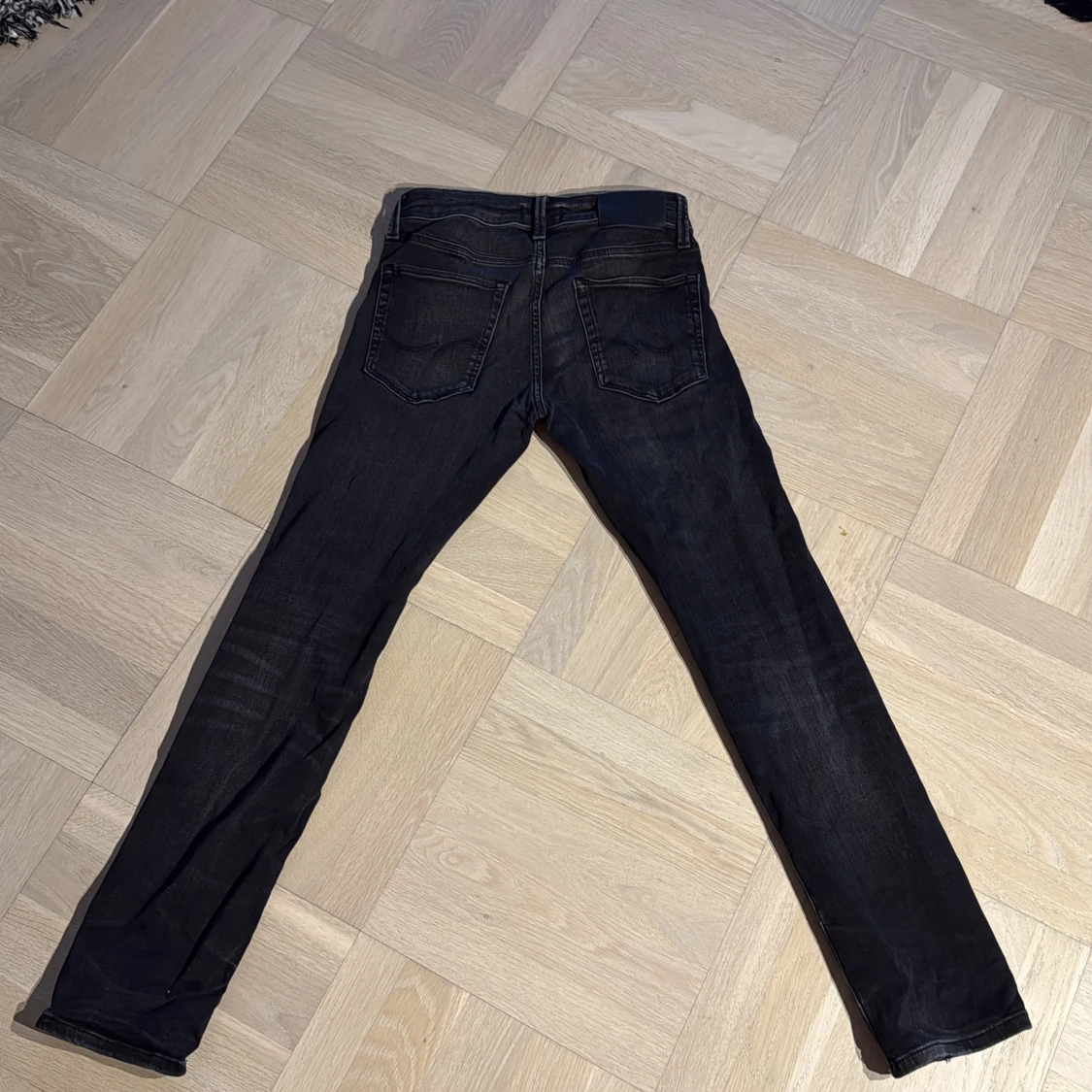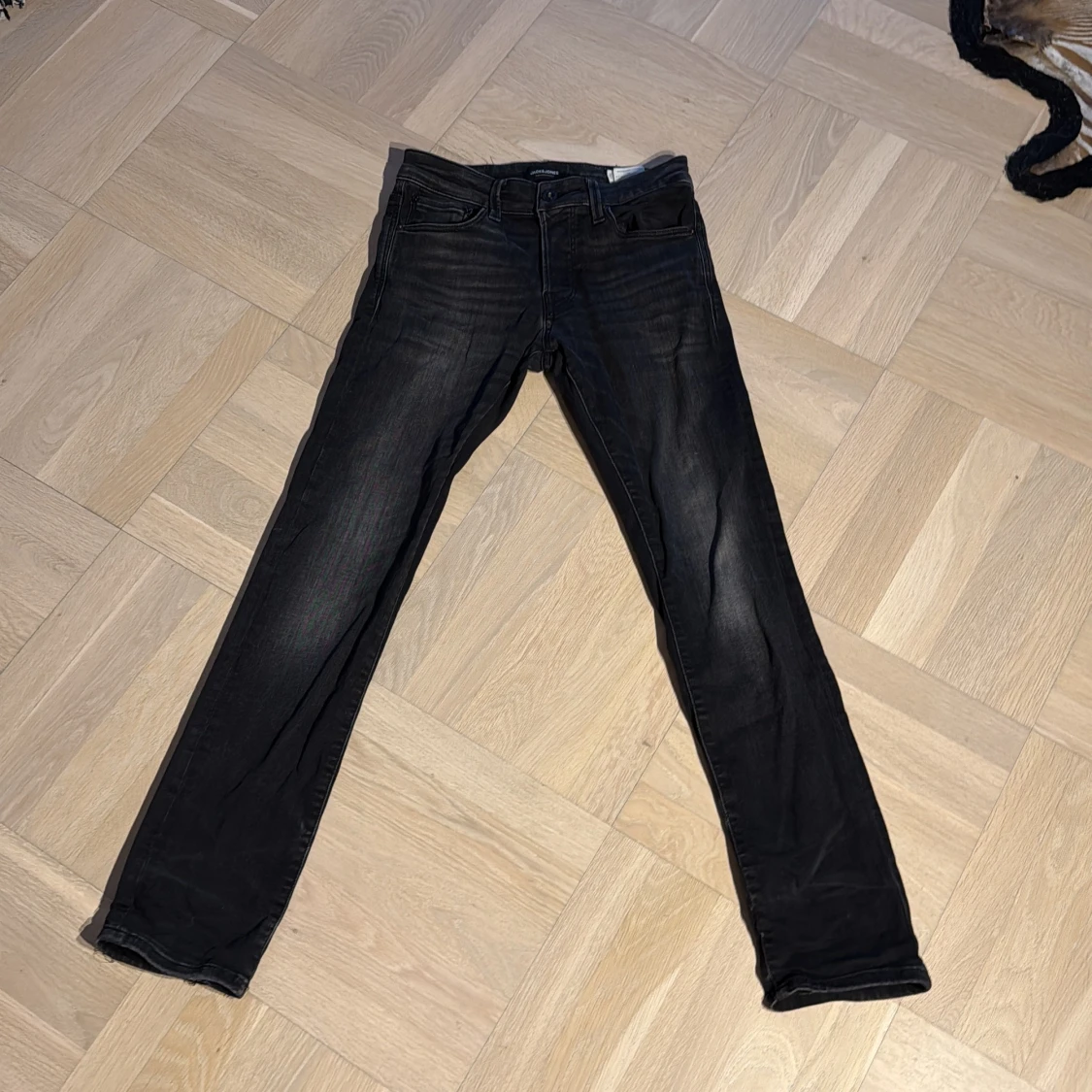 Svarta jeans från Jack & Jones, modell Slim/Glenn. Jeansen har en smal passform med klassisk femficksdesign och subtila slitningar. Tillverkade i stretchig denim för extra komfort. Perfekta för dig som gillar en stilren och modern look. Skriv vid funderingar och pris kan diskuteras🤗. W28 L30