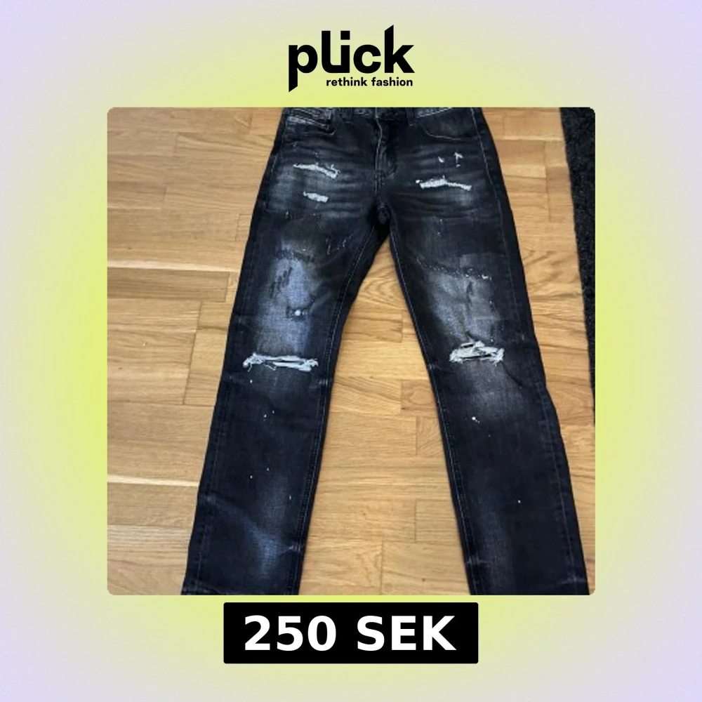 Snygga svarta jeans med slitningar och hål på knäna samt coola detaljer som ger en streetkänsla. Raka ben och klassisk femficksmodell. Perfekta för dig som gillar en edgy stil.