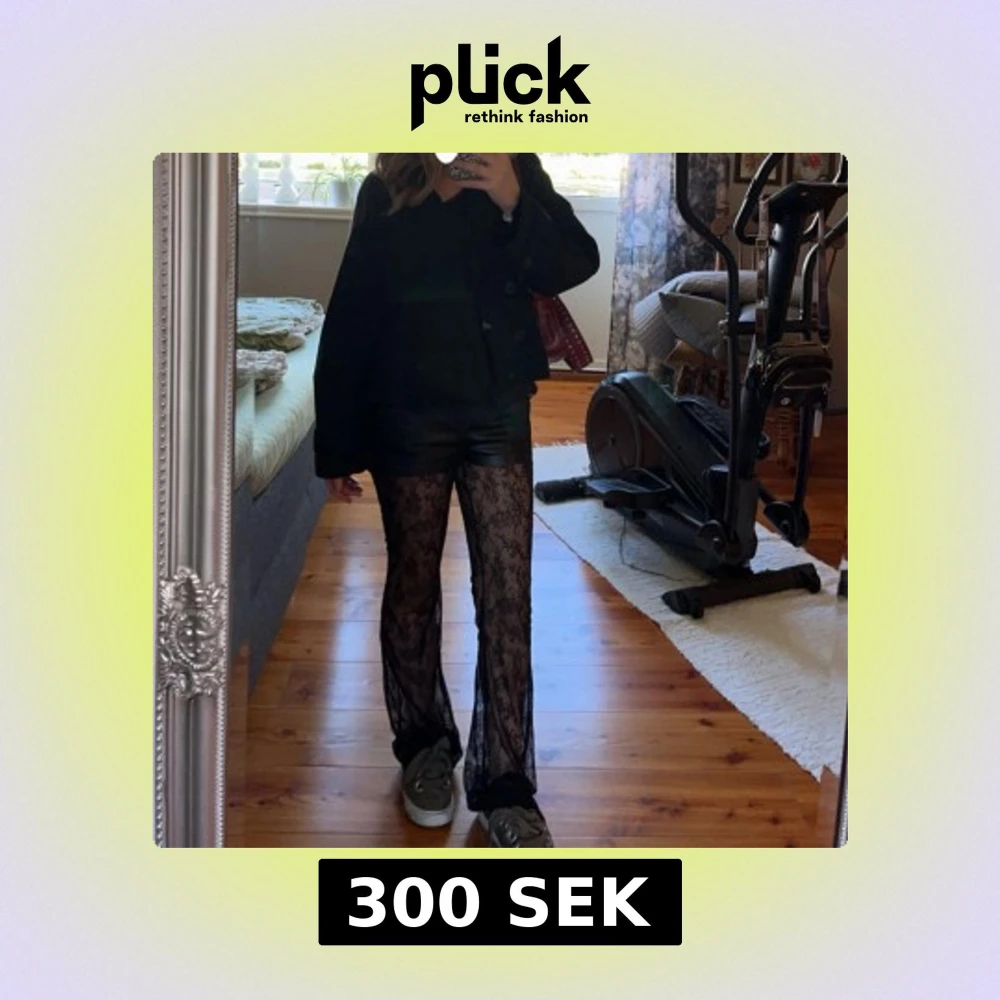Snygga svarta byxor med spetsdetaljer som ger en elegant look. Perfekta för att sticka ut med en unik stil. Sitter som S