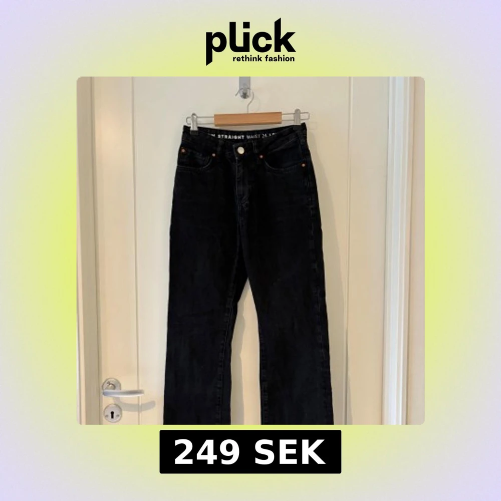Ett par lågmidjade straight jeans i svart från bikbok! Byxorna är aldrig använda men har inte kvar lappen och storleken är W24L32! 💕