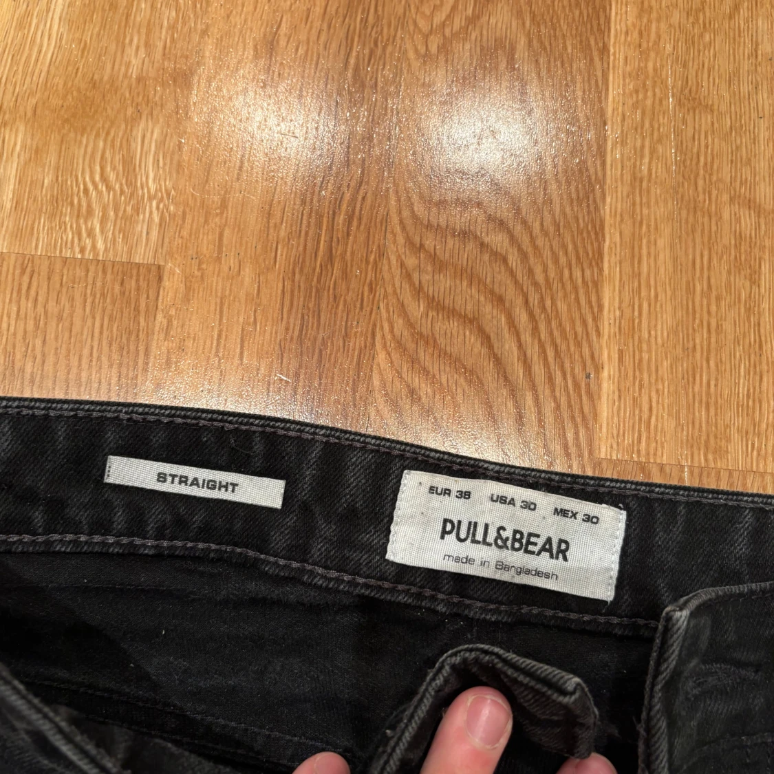 Svarta jeans från Pull&Bear i rak modell. Klassisk femficksdesign och normal midja. Jeansen är tillverkade i ett mjukt bomullstyg med lite stretch för extra komfort. Perfekta för en clean och avslappnad look.